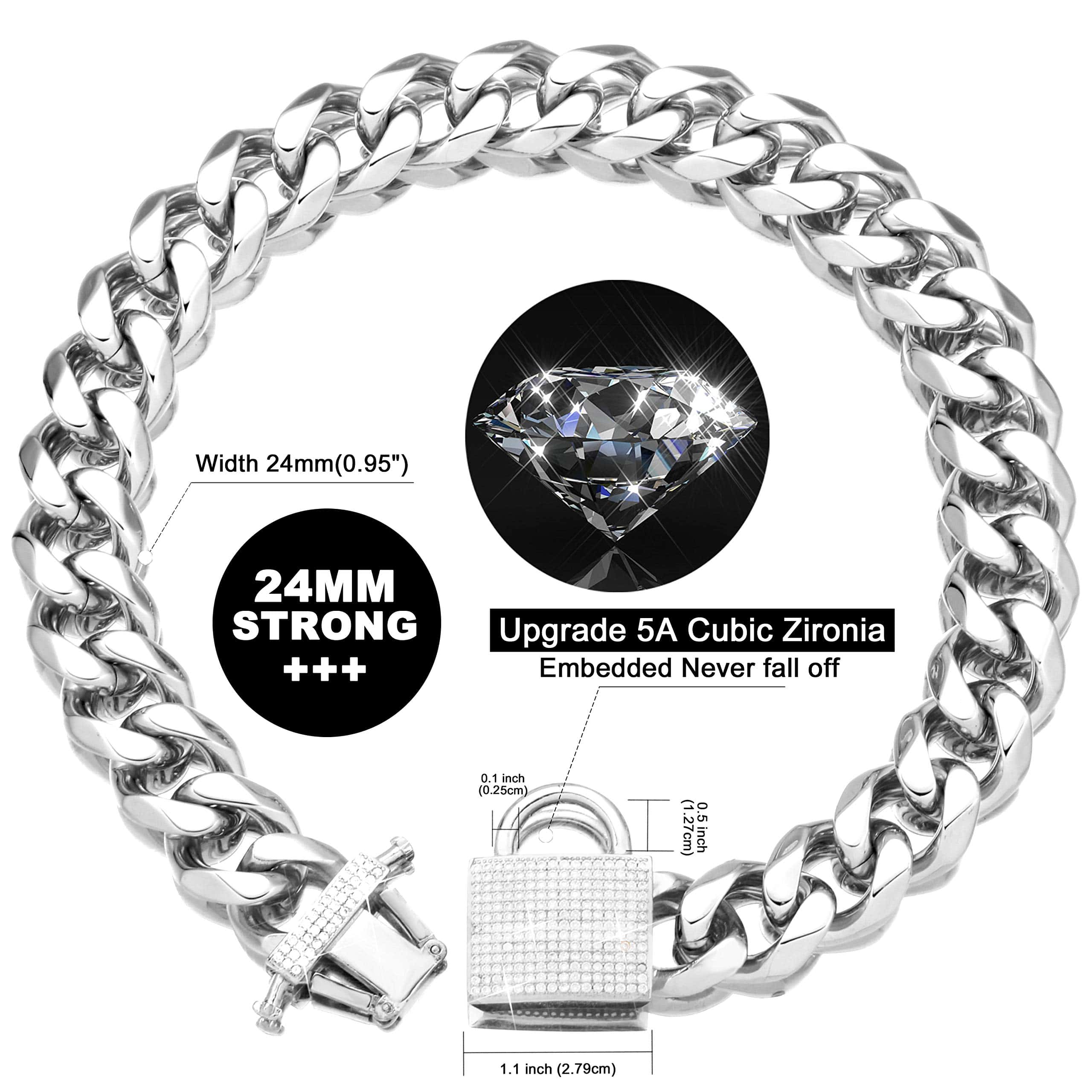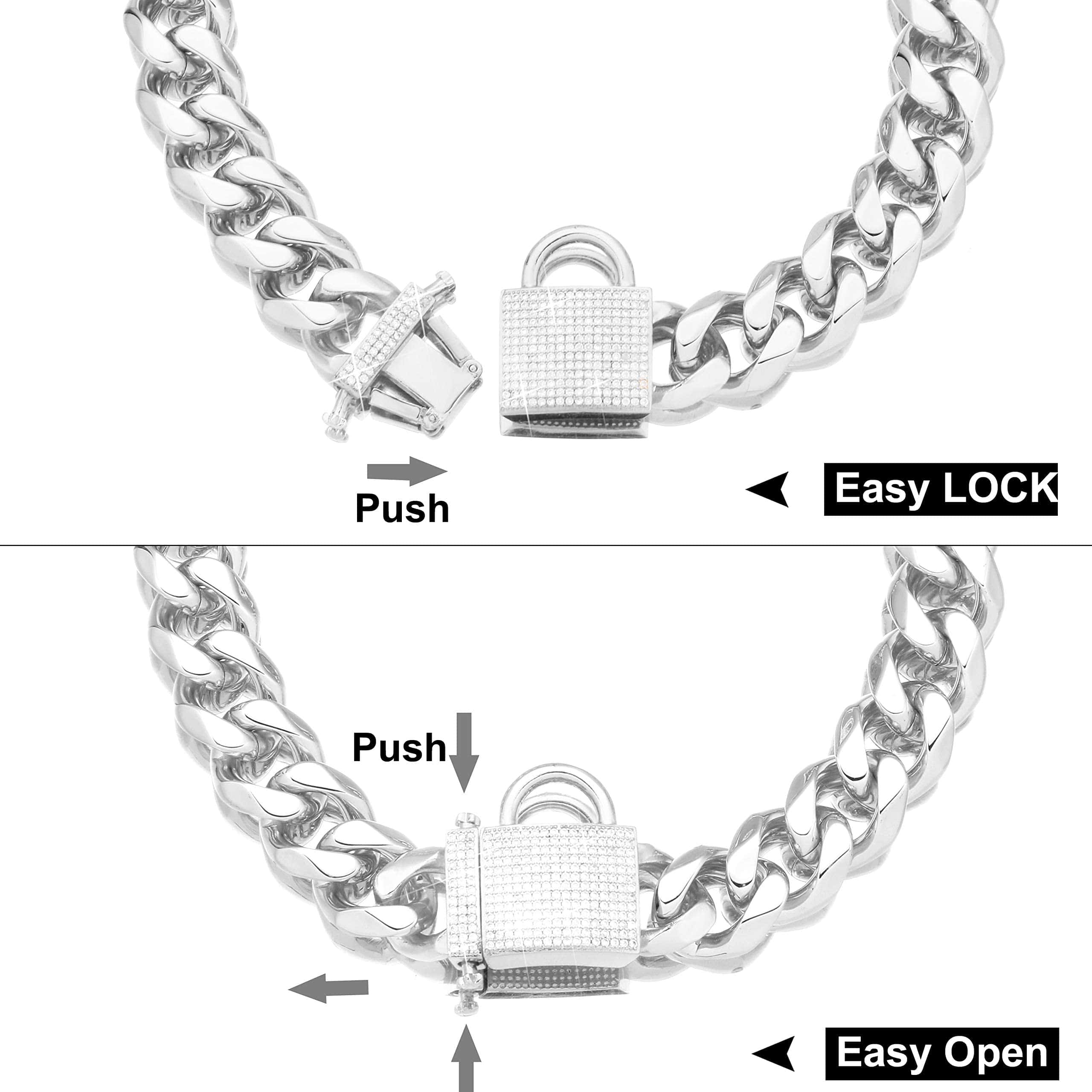 ¿Por qué elegir joyas de acero inoxidable Las joyas de acero inoxidable no se manchan ni se oxidan, lo que puede durar más que otras joyas. Pueden resistir mucho desgaste. Y son increíblemente hipoalergénicas. Estas ventajas hacen que sea un accesorio más popular. ¿Por qué necesitas joyas de acero inoxidable El acero inoxidable de alta calidad tiene una alta resistencia al óxido, la corrosión y las manchas, lo que requiere un mantenimiento mínimo. El acero inoxidable es uno de los metales más biocompatibles, por lo que las joyas de acero inoxidable son increíblemente hipoalergénicas gracias a sus propiedades antialérgicas. Al ser uno de los metales más fuertes de todas las joyas, no se oxida y será muy duradero. Todo esto lo convierte en un accesorio de moda de primera para complementar tu guardarropa con el estilo elegante y contemporáneo que ofrecen nuestras joyas de acero inoxidable. Sigue a PRADOG para encontrar más estilos de Collares de Cadena para Perro para Perros Medianos y Grandes, Collares de Adiestramiento, Correa de Cadena de Eslabones Cubanos Fuerte, Resistente a la Masticación, de Acero Inoxidable, para Rottweiler, Pitbull, American Bully, Pastor Alemán, Husky, Malinois Belga, Cavapoo, Jack Russell.