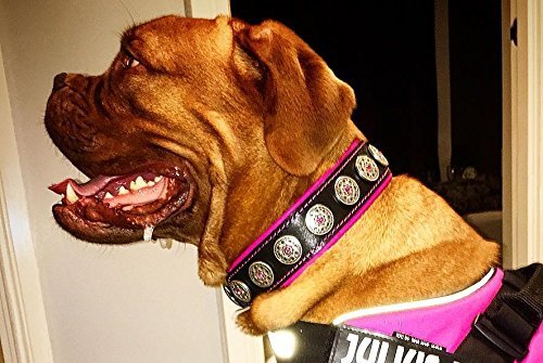 BESTIA CUSTOM DOG GEAR presenta: Nuestro collar «Bijou» es la joyería de cuero que tu perro puede usar todos los días. Este collar tiene 7 (hasta 13) remaches decorativos con un cristal verde de 6 mm de ancho. Cuenta con nuestro popular acolchado de cuero genuino en el interior, es muy suave y gentil con el cuello de tu perro. El ancho total del collar, incluyendo el acolchado es de 2 pulgadas. Todas las partes metálicas y remaches son niquelados, color plateado. La hebilla y el anillo D son de 30 mm (1,2 pulgadas) de ancho. Disponible en las siguientes tallas: talla S (para un cuello de 13,8 a 16,7 pulgadas) talla M (para un cuello de 16,7 a 19,7 pulgadas) talla L (para un cuello de 19,7 a 22,6 pulgadas) talla XL (para un cuello de 22,6 a 25,6 pulgadas) POR FAVOR, MIDE EL CUELLO DE TU PERRO ANTES DE HACER TU PEDIDO. 100% cuero genuino. Acolchado suave. Calidad hecha a mano. Fabricado en Europa. Diseño único.