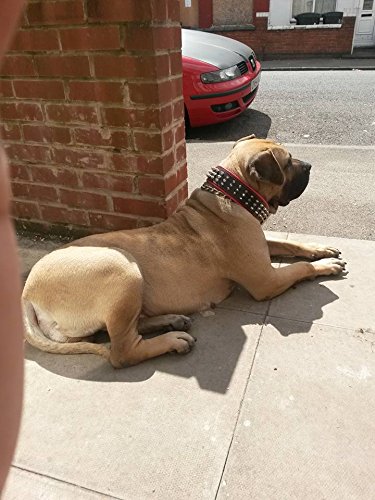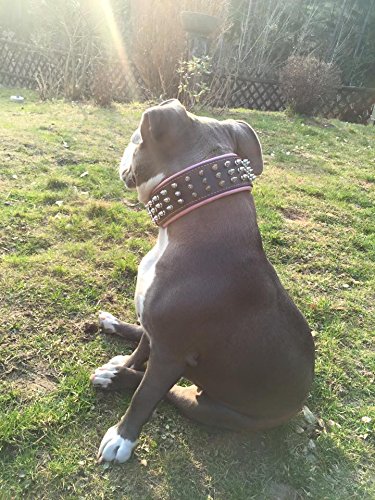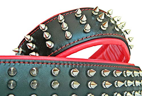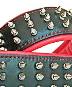 BESTIA CUSTOM DOG GEAR presenta con orgullo: El collar «Silver Gaint» cuenta con una combinación de tachuelas de tornillo de 1/2 pulgada de largo y un acolchado de cuero suave. La capa base de este collar es de cuero de correa de búfalo de 4 mm de grosor de la más alta calidad. Es muy resistente y duradero. La capa interior es nuestro exclusivo cojín suave. También es 100% cuero real de cerdo o cordero. Podemos ofrecerte este modelo en una amplia gama de tamaños y colores de cojín. Este collar tiene un ancho total de 2.5 pulgadas (6,3 cm). La hebilla y el anillo D miden 1.4 pulgadas (35 mm) para tallas L – XL, y 2 pulgadas (50 mm) para la talla XXL. Todas las piezas metálicas están niqueladas, fabricadas con alambre de acero, especialmente para este propósito. Tamaños disponibles: Tallas M- se ajusta a un cuello de 16.7 a 19.7 pulgadas Talla L- se ajusta a un cuello de 19.7 a 22.6 pulgadas Talla XL- se ajusta a un cuello de 22.6 a 25.6 pulgadas Talla XXL- se ajusta a un cuello de 25.6 a 29.5 pulgadas Este collar está destinado a razas de perros grandes a gigantes como: Pitbull, cane corso, Rottweiler, American Bully, American Bulldog, Presa canario, Dogo Argentino, Mastiffs, etc. ¡Si tienes alguna pregunta, escríbenos! Cuero genuino acolchado suave de calidad hecha a mano 2.5 pulgadas de ancho