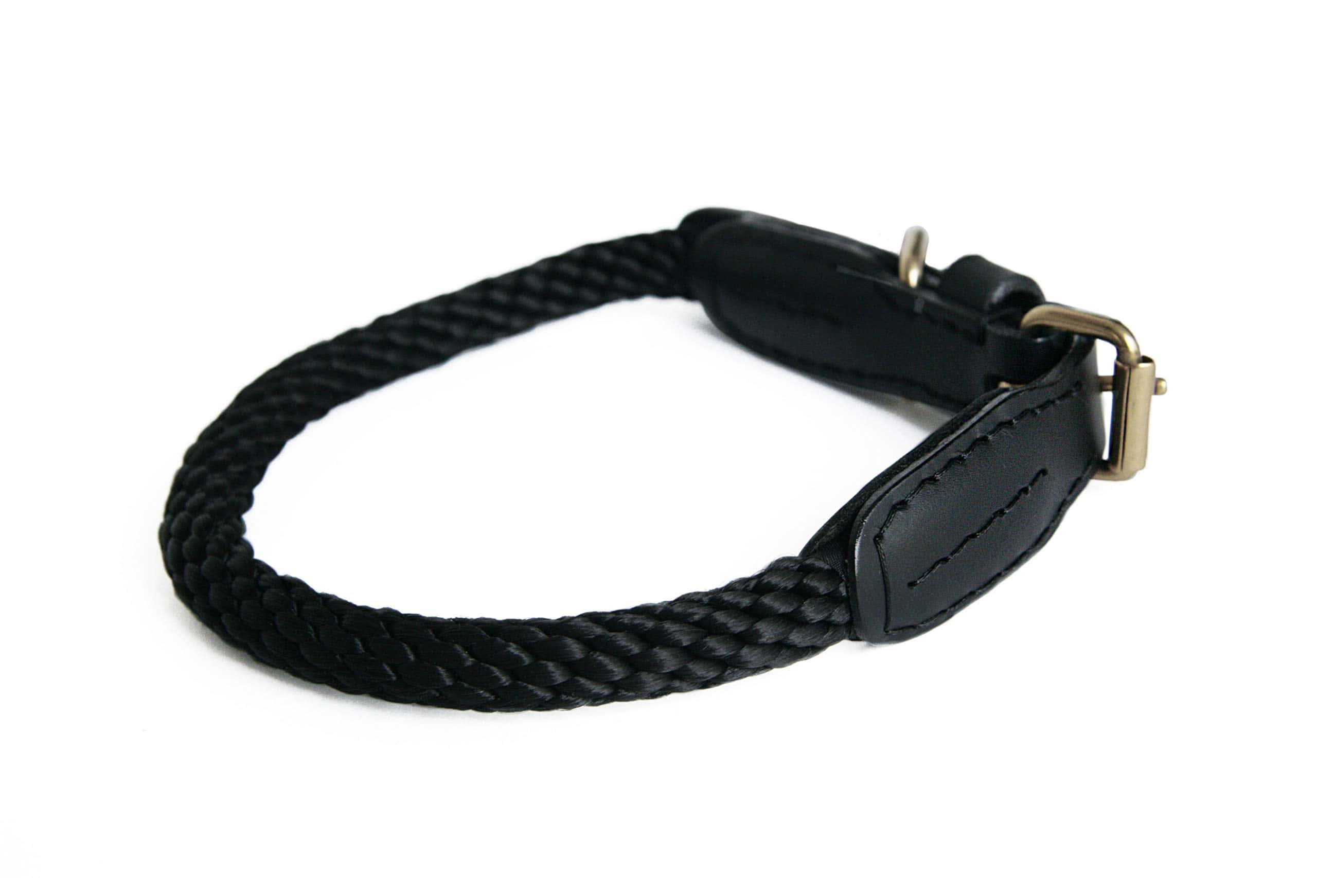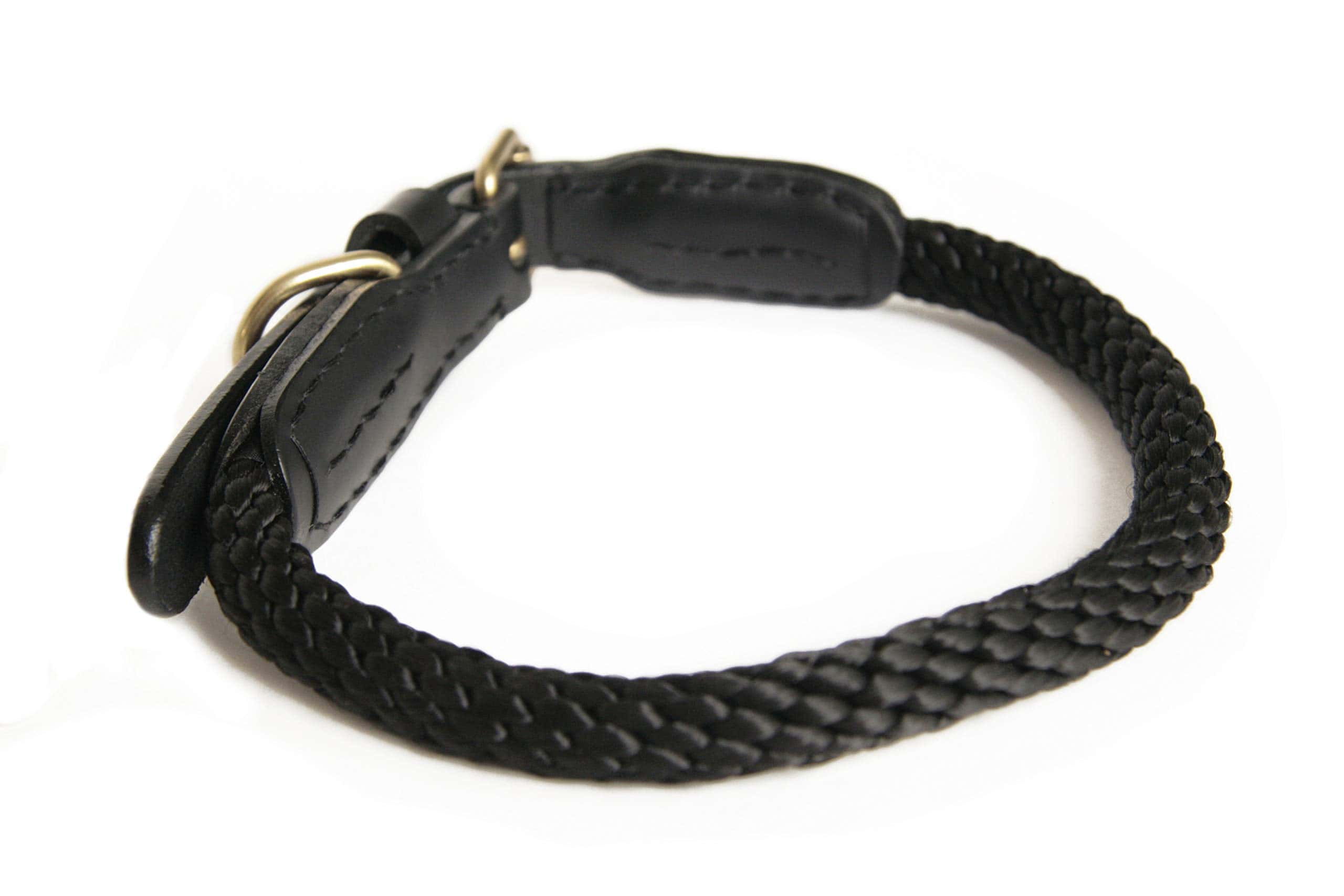 Collar de alta calidad y versátil para perros fabricado con cuerda trenzada de polipropileno suave y resistente, terminado con extremos de cuero tradicional de alta calidad y cierre de hebilla de metal seguro para darte un collar refinado y duradero, pero ligero perfecto para uso diario.