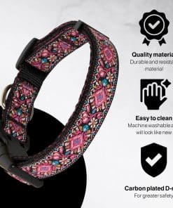 La marca Art Tribute te trae un collar cómodo para perros pequeños, medianos y grandes. Hecho de tela resistente con una hebilla de liberación rápida que durará toda la vida. Máximo confort para tu perro y fácil de usar. ¡Haz que tu perro luzca a la moda con las colecciones de collares de arte y flores! Son impermeables y a prueba de olores, y súper fáciles de usar. Asegúrate de medir el cuello de tu perro en su punto más ancho y deja un margen de 2 dedos. Elige tu estilo y tendrás al perro más elegante del bloque. Nuestra excepcional gama de tamaños: Pequeño 10-15 de largo x de ancho para Cavalier King Charles, Pekingese, Miniature Schnauzer, Pug, Scottish Terrier. Mediano 12-18 de largo x de ancho para Beagle, Border Collie, Bulldog Francés. Grande 15-22 de largo x 1 de ancho para Boxer, Golden Retriever, Labrador Retriever. Extra-Grande 19-26 de largo x 1 de ancho para Bernese Mountain, Rottweiler. Garantía de satisfacción. Equipo de soporte al cliente amante de los perros siempre disponible.