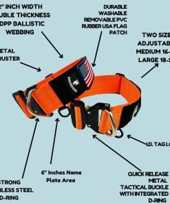 Collar táctico personalizado con placa de identificación – Collares de perro personalizados Nuestro collar táctico personalizado puede ser personalizado con el nombre de su perro para un toque extra de unicidad, convirtiéndolo en un collar de perro con nombre. Añada un toque personal con una placa de 6 pulgadas de gancho y bucle área para collar de perro diseñada para paneles de identificación o parches de morale de collar de perro. Cada collar táctico personalizado viene con un parche removible de la bandera americana de EE.UU. para mostrar el collar táctico patriótico de su cachorro con nombre. Collar táctico para razas de perros grandes – Elija entre tamaños Medium (16″-22″) y Large (18″-27″) para el ajuste perfecto como XL collar de perro. Recuerde medir el cuello de su perro antes de hacer un pedido de collar de perro militar. Ya sea que esté buscando un collar de perro extra grande, Collar de perro personalizado colores vivos neón o clásico negro, DEZIZEUSK9 tiene un collar K9 para cada perro de trabajo o mascota. Bucle de etiqueta de identificación dedicado: mantenga la I.D. de su perro y otras etiquetas esenciales separadas de la correa con un bucle dedicado. Este diseño evita que las etiquetas se suelten de su collar de perro de bandera americana, garantizando seguridad y comodidad. Adecuado para todos los perros grandes y son excelentes collares de pitbull, accesorios de pastor alemán, collares de rottweilers, collares de dogos alemanes a collar de perro policial.