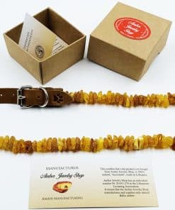 Todos los productos de ámbar que vendemos están hechos solo con piedras de ámbar genuinas y naturales encontradas en la región del Báltico. Todo nuestro Ámbar Báltico es 100% original y natural, no modificado, sintéticos. Descripción: Collar de Ámbar Báltico natural para perros, gatos. Hecho con cuentas de ámbar crudo del Báltico genuino. El peso de los collares: 20-25cm 14gr. 25-30cm 17gr. 30-35cm 22gr. 35-30cm 24gr. 40-45cm 26gr. 45-50cm 28gr. 50-55cm 36gr. 55-60cm 42gr.