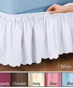 Ajustable, volante elástico envolvente que hace que sea tan fácil de poner y quitar de tu cama, que ni siquiera necesitarás levantar el colchón. Encantador falda de cama con borde con volantes oculta tu somier y el almacenamiento debajo también. Hecho de una mezcla de poliéster y algodón. Lavable a máquina para mayor comodidad. Disponible en 2 tamaños y 6 colores: azul, burdeos, chocolate, marfil, rosa o blanco. Completa el look con artículos coordinados: Falda de Cama con Volantes de Encaje, 96639; Falda de Cama Ruffle con Ojales, 93778; Falda de Cama Elástica con Volantes, 96630.