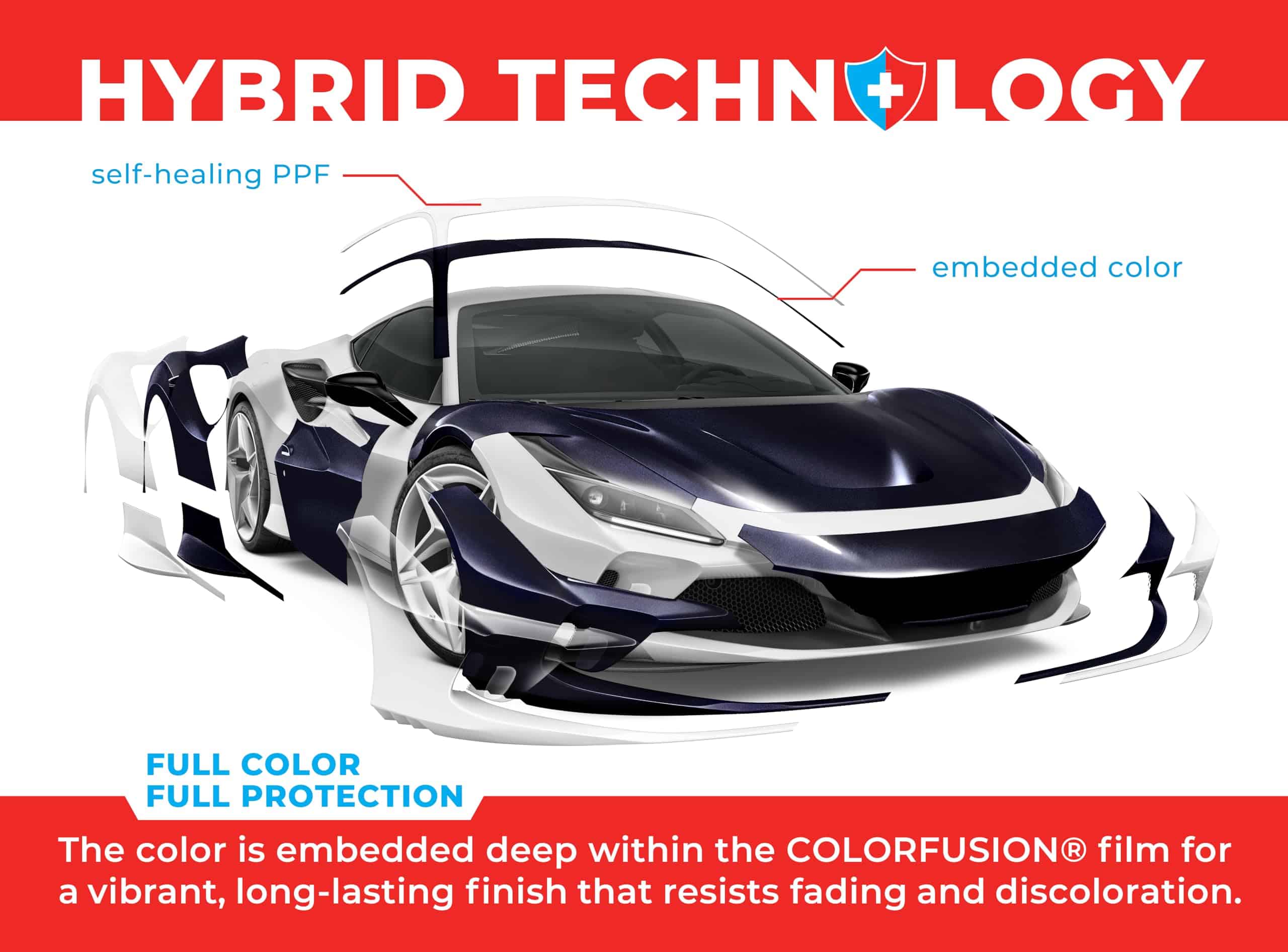 ColorFusion PPF by VViViD combina la durabilidad del Film de Protección de Pintura (PPF), con la belleza llamativa de los envoltorios líderes en la industria de VViViD, garantizando que el acabado de sus vehículos permanezca impecable el doble de tiempo que otros films. ColorFusion es simplemente el envoltorio automotriz más avanzado que puedes tener. La aplicación húmeda se sugiere para áreas con poca elasticidad y superficies planas grandes como capós, techos, algunas puertas y más. La aplicación húmeda limita las posibilidades de burbujas, líneas de pegamento, marcas de estiramiento, estiramiento excesivo y otros errores de instalación. Debido a los canales de aire, el método de aplicación húmeda requiere menos solución que el PPF transparente estándar. ColorFusion tiene capacidades de auto-curación muy avanzadas en comparación con cualquier vinilo para envoltorios de automóviles, asegurando que su acabado se vea hermoso 2 veces más tiempo que otros envoltorios, y evitando daños en la pintura debajo. Aplique suavemente calor con una pistola de calor y observe cómo su envoltura de ColorFusion se cura de los arañazos que serían el fin para cualquier otro film. El color está incrustado profundamente en el film ColorFusion para un acabado vibrante y duradero que resiste la decoloración. ColorFusion está respaldado con un adhesivo removible, activado por calor y completamente seguro para la superficie, que nunca comerá ni disolverá los acabados superiores en la pintura de su automóvil, a diferencia de productos de menor calidad. No hay marcas en el papel protector. El empaque puede variar.