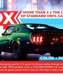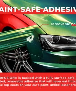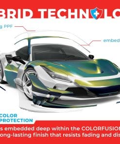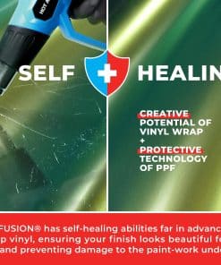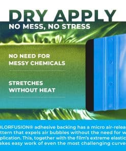 ColorFusion PPF de VViViD combina la durabilidad del Film de Protección de Pintura (PPF) con la belleza de las envolturas líderes en la industria de VViViD, asegurando que el acabado de su vehículo se mantenga impecable el doble de tiempo que otros films. El adhesivo de respaldo tiene un patrón micro de liberación de aire que elimina las burbujas de aire sin necesidad de aplicación húmeda. El calor suave de un secador de aire caliente puede curar arañazos en la envoltura, una característica que no se encuentra en otros films. ColorFusion utiliza un adhesivo removible, activado por calor y completamente seguro para la superficie que no dañará los acabados superiores de su automóvil. La fórmula patentada ULTRA-FINISH magnifica cada imperfección, lo que dificulta más la preparación e instalación. Consejos para el mejor acabado incluyen el uso de una barra de arcilla para una mayor claridad de la superficie y aplicar la envoltura mientras se mantiene el exceso de material fuera de la superficie para evitar atrapar aire y distorsiones. Si se producen burbujas, presiónelas suavemente o perfore para liberar el aire. Especificaciones: grosor de 7.5 mils, aplicación en seco, Nano Liberación de aire, capa superior de UV Ultra-Finish y acabado auto-sanador mejorado. El adhesivo es de base acrílica, reposicionable y sensible a la presión, con una durabilidad que es el doble de la vida útil de otras envolturas de vinilo automotriz. Para aplicación húmeda, rocíe ligeramente la superficie y seque 1-2″ desde los bordes para una mejor adherencia. Las áreas que necesitan estirarse pueden dejarse secas para una mejor adherencia. Recorte la envoltura a la forma una vez instalada y presione las áreas húmedas con una toalla, permitiendo tiempo para secarse antes de sellar. Estos pasos garantizan un acabado profesional e impecable con la envoltura ColorFusion.
