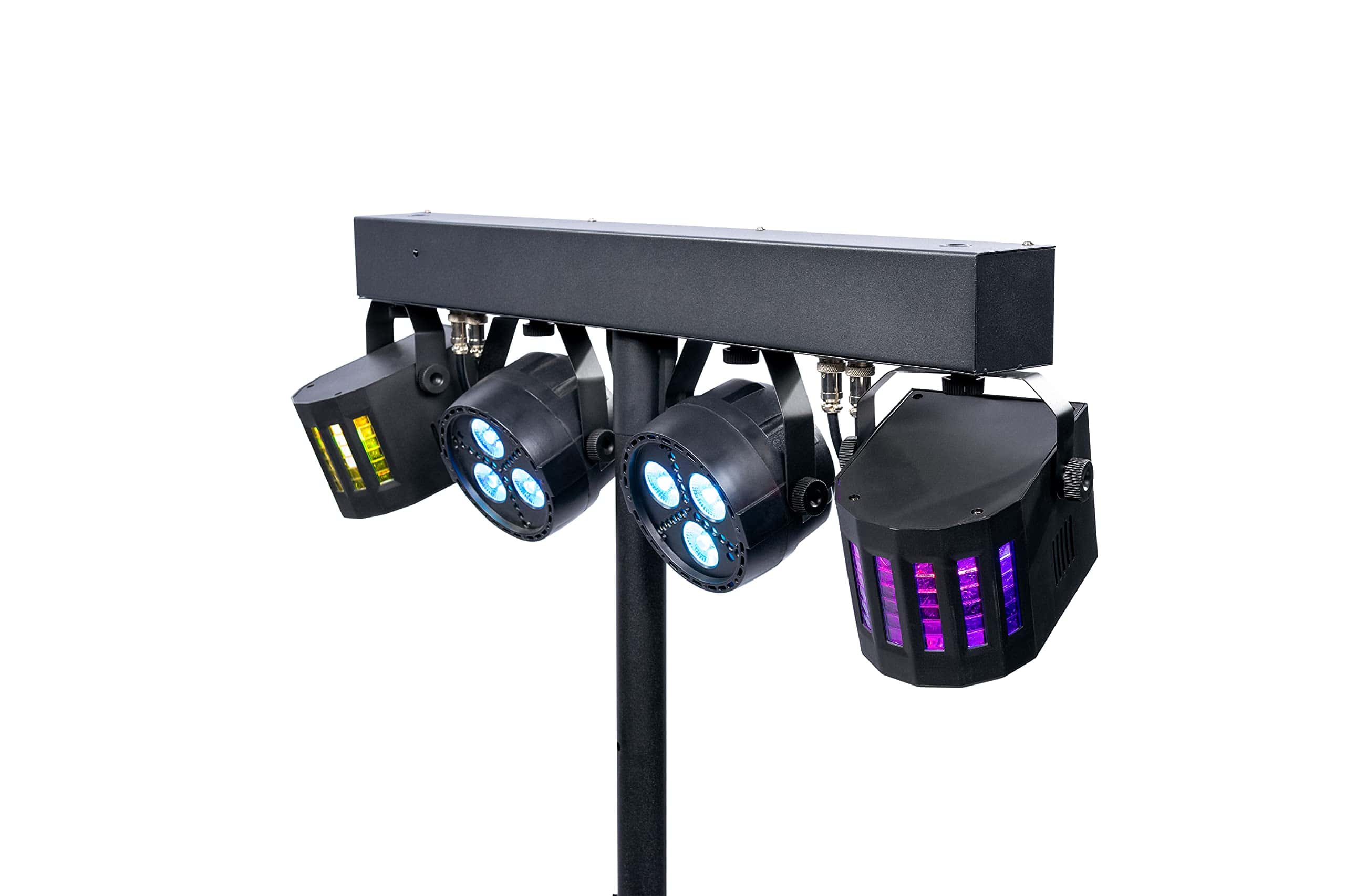 El ColorKey PartyBar GO, tu nuevo mejor amigo, cuenta con hasta 4 horas de vida de batería para alimentar (2) Pars LED RGB de 3x3W, cada uno con 21 LED blancos de destello incrustados, junto con (2) luces FX Derby RGBW de 4x3W para una salida deslumbrante de luz y movimiento. Un soporte de iluminación de 2m incluido eleva el sistema PartyBar GO alimentado a una altura máxima para una cobertura máxima de área, al mismo tiempo que es lo suficientemente compacto y ligero como para mover libremente tu sistema por la habitación. No te preocupes, es fácil operar tu PartyBar GO de forma inalámbrica con el control remoto IR proporcionado. PartyBar GO está diseñado para brindar horas de diversión sin ataduras a cables o enchufes. Nuestro control remoto ofrece acceso instantáneo a numerosos programas de iluminación que incluyen Modo Automático, Sonido, Selección de Color o Apagado. Aunque la luz ofrece numerosas capacidades móviles, también ofrece un control DMX directo de 512 canales DMX a través de 3/6/15 canales DMX para control desde programas de iluminación de software o un controlador DMX de hardware. Cuando el espectáculo ha terminado, es fácil transportar el PartyBar GO con su bolsa de transporte incluida. Rápidamente verás lo fácil que es configurar y operar tu PartyBar GO, pero si tienes algún problema, puedes estar tranquilo con nuestro soporte al cliente de ColorKey disponible y la garantía de dos años del producto.