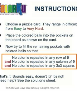 Sudoku en color! Usa las tarjetas de rompecabezas para configurar el tablero y el razonamiento deductivo para completar los espacios en blanco. ¡Un color de cada uno encaja en cada columna, fila y cuadrado!