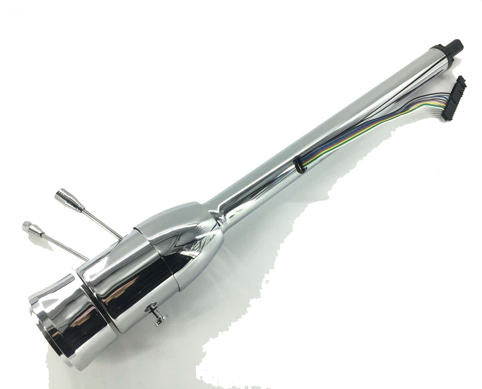 Tipo de parte: Columnas de dirección Longitud de la columna (in): 30.00 in. Diámetro de la columna (in): 2 in. Eje de salida inferior de la columna: 1 in. DD Colapsable: No Telescópica: No Ubicación de la llave de encendido: Tablero Indicador de marcha incluido: No Interruptor de luces de emergencia: Sí Interruptor de seguridad neutral incluido: No Inclinable: Sí Interruptor de señal de giro incluido: Sí Material de la columna: Acero inoxidable Acabado de la columna: Cromado Cantidad: Se vende individualmente.