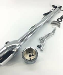 Característica: Tipo de Parte: Columna de Dirección Longitud de la Columna (en): 32.00 in. Diámetro de la Columna (en): 2 in. Eje de Salida Inferior de la Columna: 1 pulgada DD Colapsable: No Telescópica: No Ubicación de la Llave de Encendido: Panel de control Indicador de Cambio Incluido: Sí Interruptor de Peligro: Sí Interruptor de Seguridad Neutral Incluido: No Inclinable: Sí Interruptor de Luz de Giro Incluido: Sí Material de la Columna: Acero Inoxidable Acabado de la Columna: Cromo Cantidad: Se vende individualmente. Notas: La columna incluye un adaptador de volante GM de 9 agujeros con una altura de 2.25 pulgadas, no incluido en la longitud de la columna. La longitud de la columna se mide desde la parte superior de la campana hasta el final del eje de salida. Incluye lentes de indicador de marcha de 3 y 4 velocidades. Las columnas de acero con diámetro están equipadas con un interruptor de luz de giro precableado y una palanca de señal billet, junto con un interruptor de peligro precableado y un cableado codificado por colores con un enchufe estilo GM de 4 1/2 pulgadas. Están acabadas en su elección de cromo o negro e incluyen instrucciones detalladas para una instalación sin problemas. Contenido del Paquete: 1 Set de Columna de Dirección de 32 pulgadas