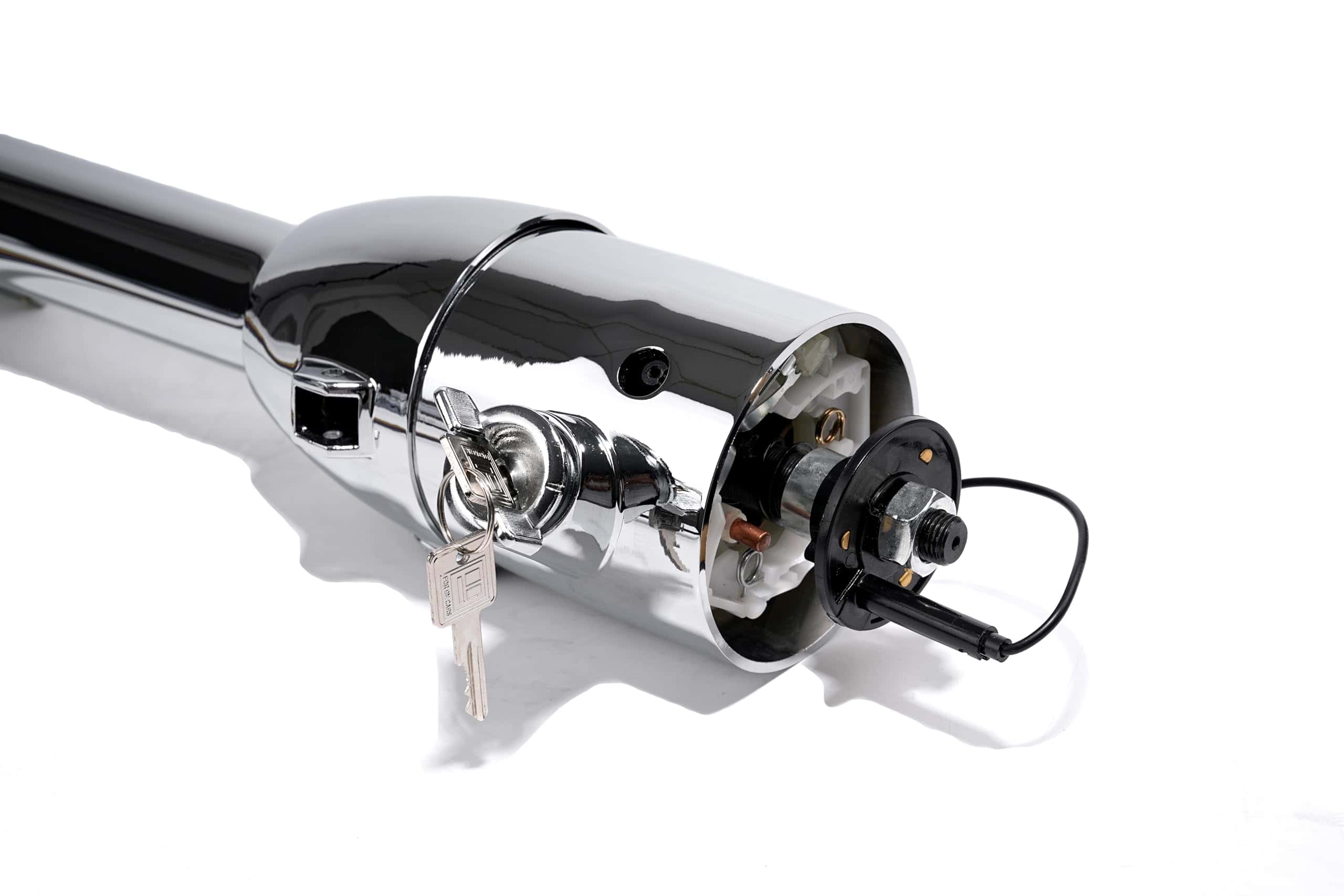 Diámetro de la columna de cambios 2″, longitud de la carcasa 7″, longitud de la carcasa principal 3.5″, longitud de la carcasa cónica 3.5″, longitud de la columna 32″, eje de salida de 2″ de largo 1″ DD Entrada del volante de dirección 3/4 x 36″ Espina Punto de cableado de la carcasa a 15.5″ Interruptor de señal de giro incluido pre-cableado Interruptor de peligro incluido pre-cableado Tapón de columna GM Plug Característica de cables codificados por colores