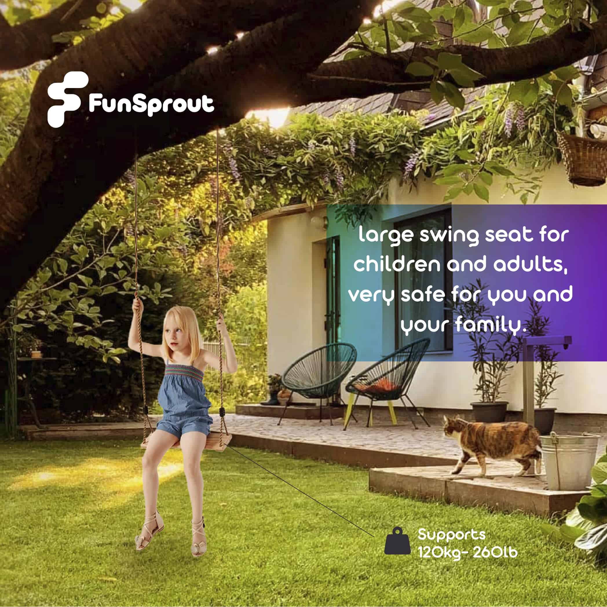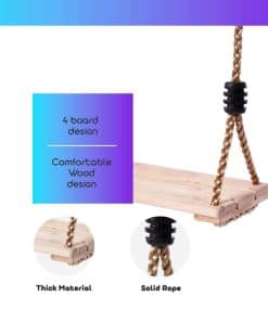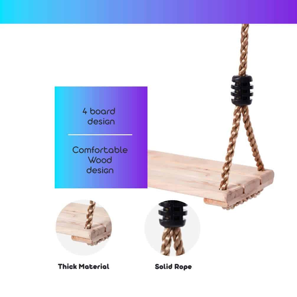 3. PARA TODAS LAS EDADES – ¡Este columpio de árbol de madera es perfecto para adultos y niños! Tiene un asiento de banco plano que es cómodo para todas las edades y puede soportar hasta 260 libras.