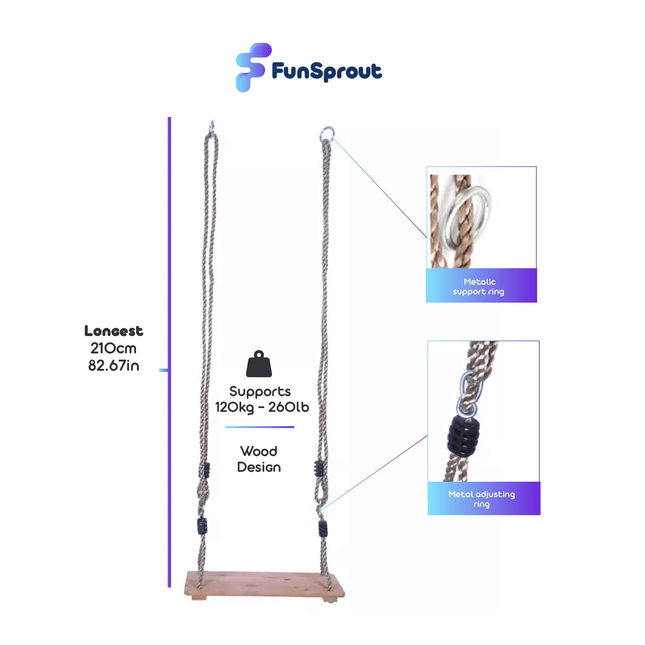 Columpio de Árbol de Madera FunSprout para Adultos y Niños