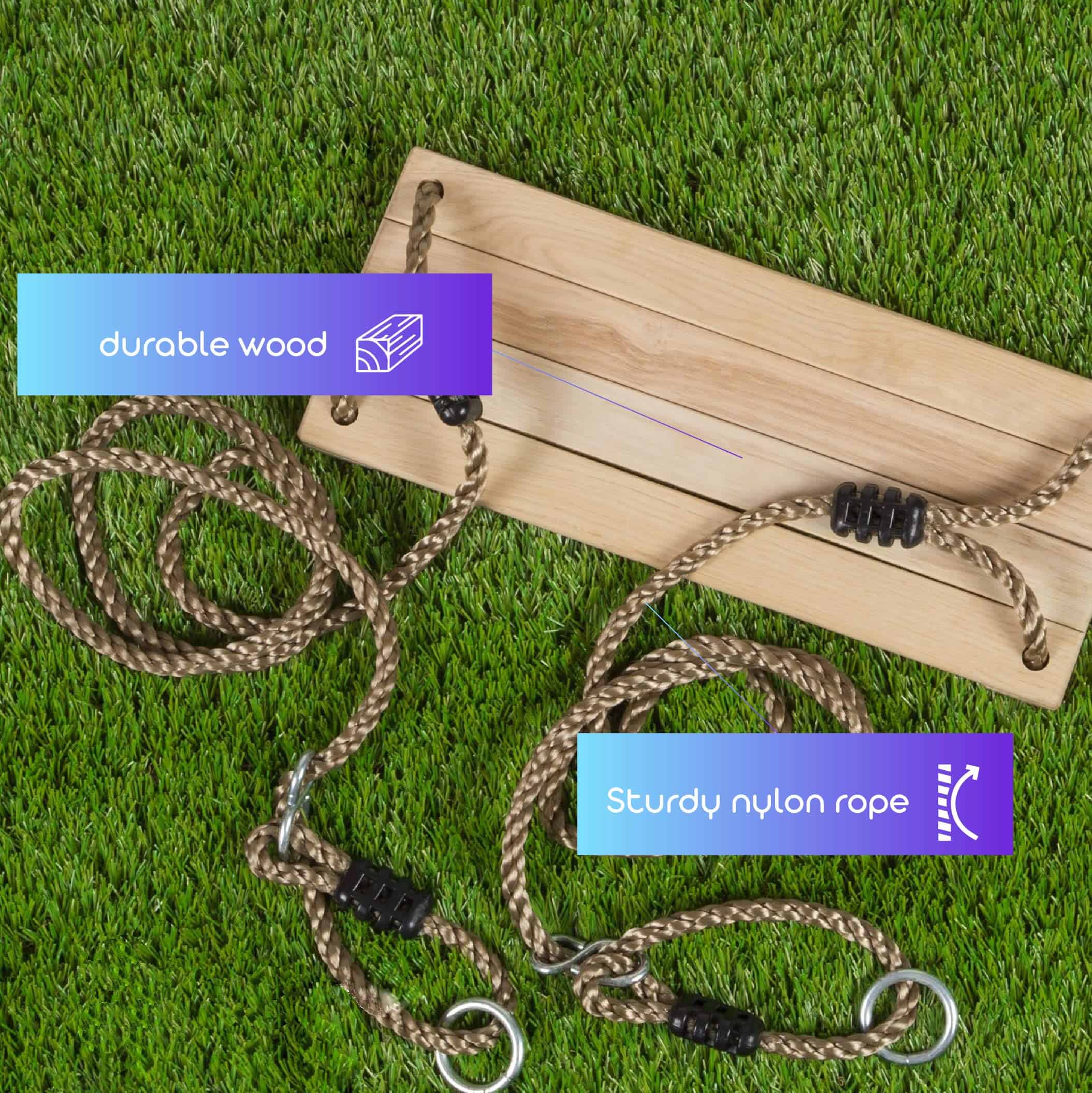 4. FÁCIL DE ENSAMBLAR – Este asiento de columpio de madera es fácil de ensamblar y se puede montar en minutos. Simplemente coloque el anillo de soporte metálico incluido y cuélguelo en un árbol o en cualquier lugar resistente con correas.