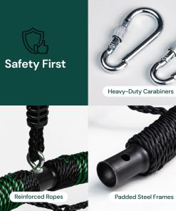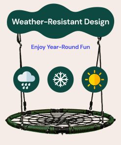 ¡Presentamos el Columpio de árbol en forma de telaraña PlayVibe, la diversión al aire libre definitiva para sus hijos! Nuestro Columpio de Platillo de 40 pulgadas está diseñado para un disfrute interminable, construido con un marco de acero resistente y una resistente tela de poliéster Oxford 900D para asegurar que pueda soportar hasta 800 libras. El columpio para árbol es resistente a la intemperie y está diseñado para durar, prometiendo años de tiempo de juego al aire libre para sus hijos. El amplio diámetro de 40 pulgadas de nuestro Columpio de Discos para Niños al Aire Libre proporciona mucho espacio para que sus hijos y sus amigos jueguen juntos cómodamente. Construido con los materiales más fuertes, nuestro Columpio de Árbol cuenta con un marco de acero galvanizado resistente al agua que es resistente al óxido y a la intemperie, garantizando durabilidad duradera para el disfrute de su familia. Hemos incluido todo lo necesario para una configuración e instalación fácil de nuestros columpios para niños. Nuestros columpios para juego de columpios vienen con dos correas de columpio reforzadas y mosquetones de bloqueo galvanizados de alta resistencia, permitiéndole colgar el columpio circular de forma segura desde una rama de árbol o techo. Nuestros accesorios para columpios al aire libre incluyen kit de colgar y cuerdas ajustables, puede tener este columpio al aire libre para niños montado en minutos en un juego de columpios, árbol, pérgola, gimnasio de juegos, equipo de juego de patio o casa en el árbol. A sus hijos les encantará la emoción de columpiarse en nuestro Columpios Circulares para Exterior, experimentando la alegría del juego al aire libre al mismo tiempo que mejoran su equilibrio y coordinación. Es la adición perfecta a cualquier patio trasero o área de juego al aire libre, proporcionando entretenimiento interminable para niños de todas las edades. No se pierda la diversión, ¡lleve a casa el Columpio de árbol en forma de telaraña PlayVibe hoy y vea cómo sus hijos se balancean de emoción!
