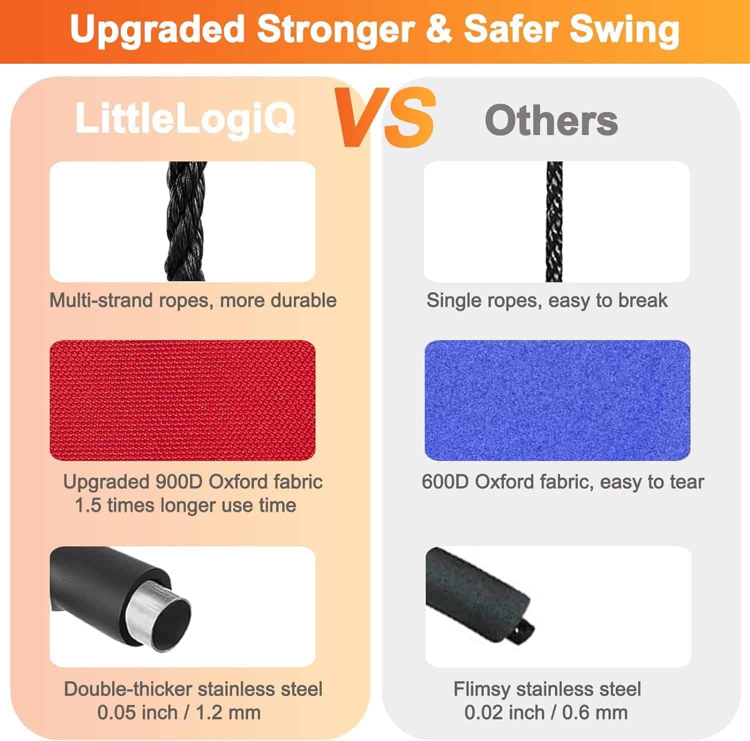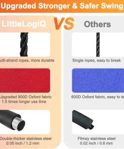 2. El Ajuste Perfecto – Altura Ajustable, Cero Problemas – 35.4 a 70.9 Pulgadas: No es necesario invertir en marcos especiales de columpios de plataforma. El columpio de árbol LITTLELOGIQ para niños y adultos cuelga de cualquier cosa lo suficientemente resistente como para sostenerlo, más 3 niños o un adulto; su actual columpio fijo, ese árbol de tamaño mediano, su terraza, o ese árbol que es tan alto que se pregunta cuánto tiempo ha existido.