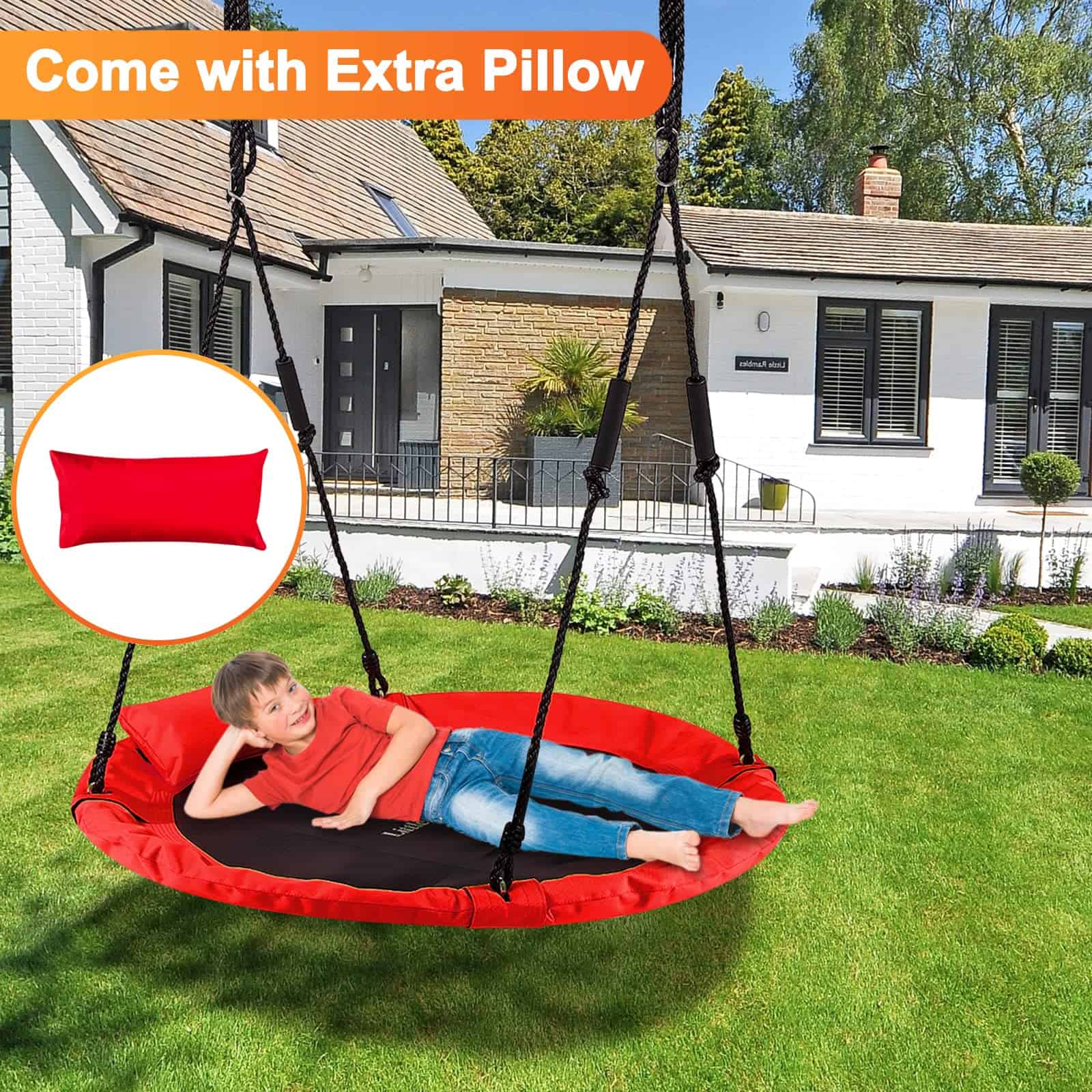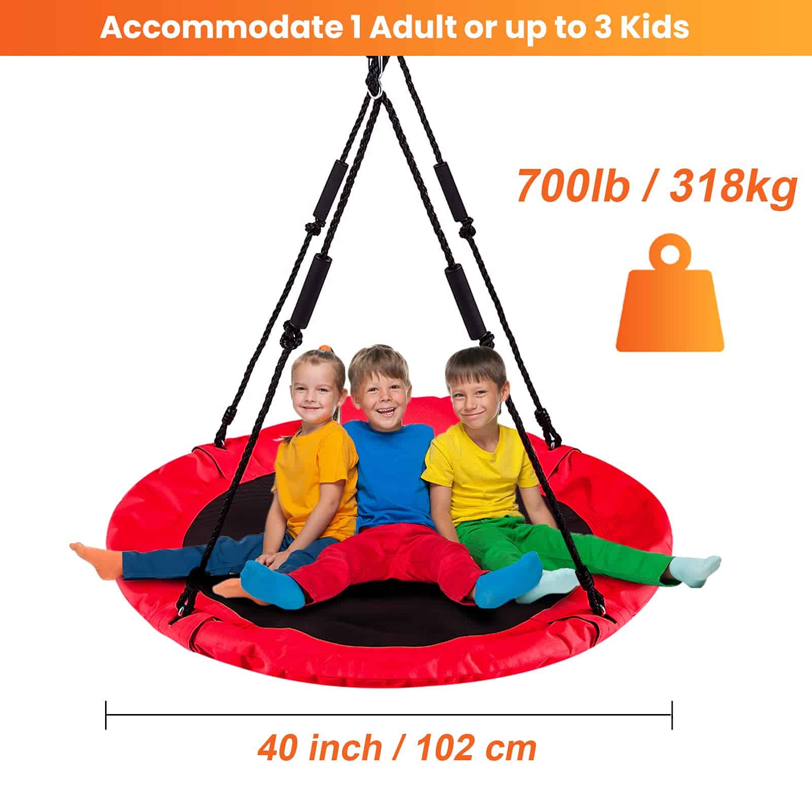 3. El Más Resistente – Vuélvete Loco en Este Gran Columpio de Disco: Construido para aspirantes a artistas de trapecio grandes y pequeños, con un marco de acero inoxidable sólido y un Oxford DuraWEAVE 900D resistente, este es el asiento de columpio para conseguir si quieres la libertad de apilar, lanzarte y rebotar como una persona loca sin preocuparte por romper, perforar o caer a través.