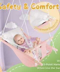 El Columpio de Lona para Bebés de Infantes a Niños Pequeños es una excelente opción para mantener entretenidos y cómodos a los más pequeños. Con la posibilidad de ajustarlo en 3 modos diferentes, este columpio es versátil y se adapta al crecimiento de tu hijo. Equipado con un arnés de seguridad de 5 puntos, asegura que tu bebé esté protegido en todo momento. El material de lona suave y cómodo, combinado con un cojín desmontable, garantiza el máximo confort para tu pequeño. Fabricado con algodón de alta calidad y madera de haya natural, este columpio es duradero y fácil de limpiar. Su sencillo montaje tanto en interiores como en exteriores lo convierte en una excelente opción para cualquier hogar. Disfruta viendo a tu bebé balancearse suavemente en este columpio de lona de alta calidad, diseñado para brindar diversión y seguridad.
