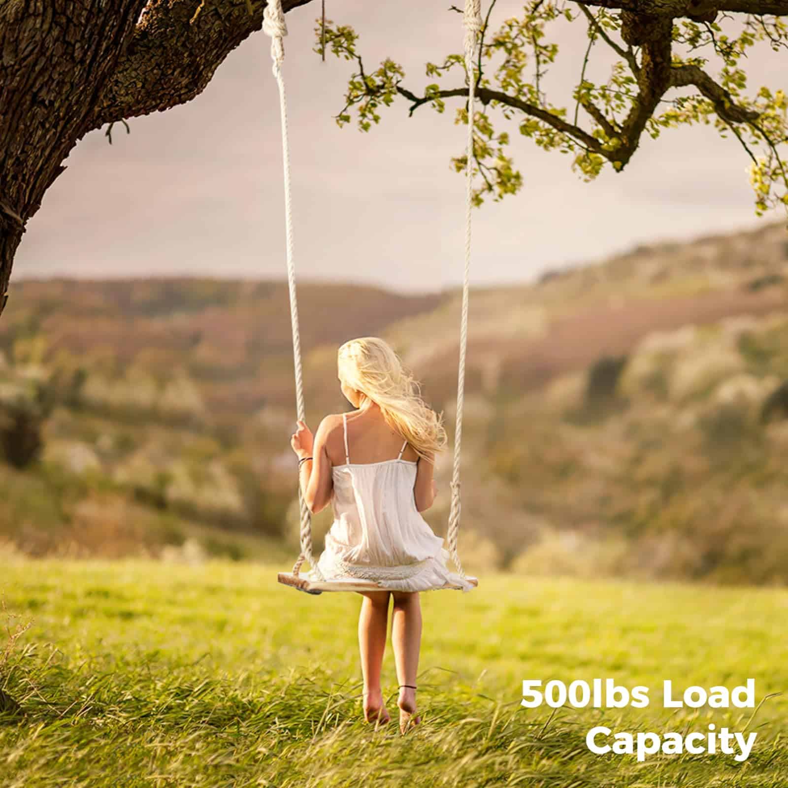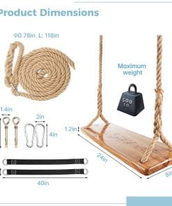 2. Adecuado para adultos y niños: Diseñado para acomodar tanto a adultos como a niños, este columpio de madera para árbol está construido con materiales confiables y duraderos. Puede soportar pesos de hasta 500 libras, manejando fácilmente la carga de un adulto. La longitud ajustable de la cuerda lo hace adecuado para usuarios de diferentes edades, asegurando experiencias de balanceo agradables tanto para niños como para adultos. Crea recuerdos inolvidables con tus hijos mientras te diviertes sin fin en este columpio.