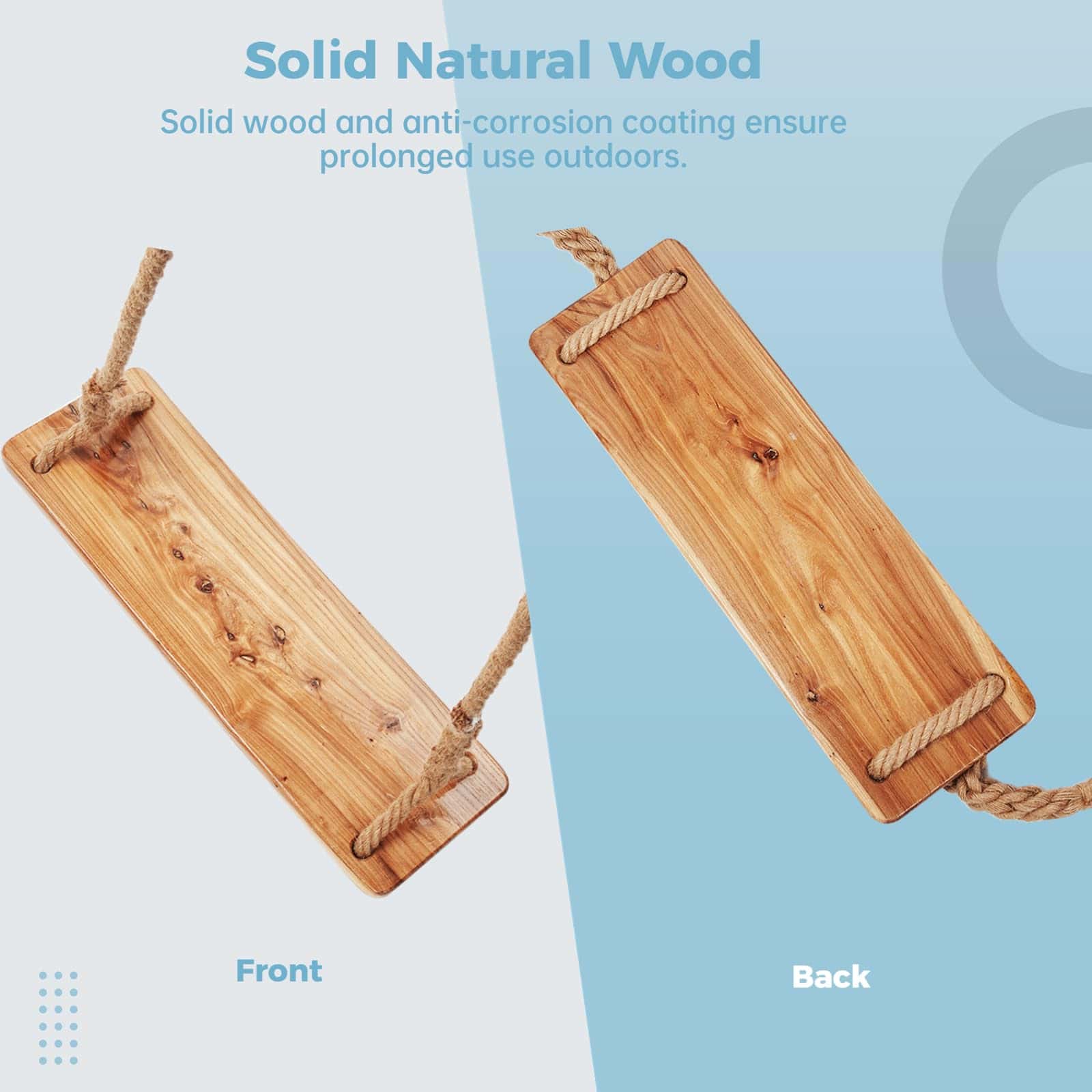 5. Versátil y resistente a la intemperie: Este columpio de madera para árbol está diseñado para resistir diversas condiciones climáticas, adecuado para uso tanto en interiores como en exteriores. Ya sea que desees instalarlo en tu patio trasero, jardín, porche, patio, parque o área de juegos, resistirá los elementos y proporcionará entretenimiento sin fin. También es un regalo considerado para mujeres, niñas y niños mayores de 4 años en ocasiones como Navidad, Año Nuevo, cumpleaños y más.