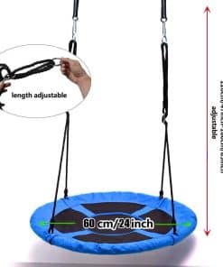 El Columpio de Nido Hi Suyi es resistente y duradero, fabricado con tela de oxford de alta calidad, aro de acero con acolchado de espuma y fuerte cuerda de nylon. Diámetro: 60cm. Incluye: 1x plataforma de columpio, 2x cuerdas colgantes ajustables, 2x mosquetones. No incluye correa para árbol ¡Se requieren compras adicionales! Carga máxima de 80 kg. Recomendado pero no limitado a edades de 3 a 12 años. No apto para niños menores de 4 años. ADVERTENCIA: Se necesita la supervisión de adultos para la instalación, revisar el juego de columpio y fijarlo de manera segura.
