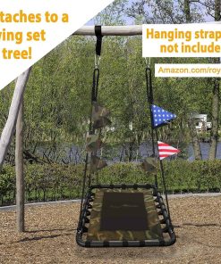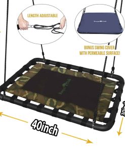 Nuestro columpio de plataforma con banderas removibles es muy popular entre los niños y es obvio por qué! Su diseño único permite disfrutar de emocionantes columpios durante todo el año. Suficientemente grande para un adulto soltero y/o múltiples niños. Siempre es un éxito en las fiestas y garantizado para provocar risas y grandes sonrisas. Aprobado por ASTM F963-11 y sección 101 (a)(2) de CPSIA. Con una capacidad de carga de 700 lbs., este columpio puede soportar varios niños al mismo tiempo. Tomamos la seguridad en serio y es por eso que solo usamos los materiales más fuertes y seguros disponibles, como tela de Oxford 900D, sin plomo y un marco de acero de alta resistencia. ¿De qué sirve un columpio si es complicado de armar y desarmar? Diseñamos nuestro columpio pensando en la simplicidad. Nuestras instrucciones fáciles de seguir hacen que sea muy sencillo armarlo o desarmarlo para guardarlo en invierno. Cuélguelo de una rama de árbol grande o adjúntelo a un juego de columpios. Tenga en cuenta que nuestras correas Easy Hang se venden por separado. Resistente a la intemperie: Nuestros columpios de plataforma resisten las inclemencias del tiempo y siguen luciendo geniales. Nuestra tela única de Oxford 900D significa que la lluvia y la nieve no son un problema para este columpio. También utilizamos cuerda de grado comercial para que no tenga que preocuparse por reparaciones. Construimos este columpio para resistir todo lo que la Madre Naturaleza le depare. Garantía de 12 meses y PATENTE PENDIENTE: Garantía contra defectos de fabricación (registro fácil después de la entrega).