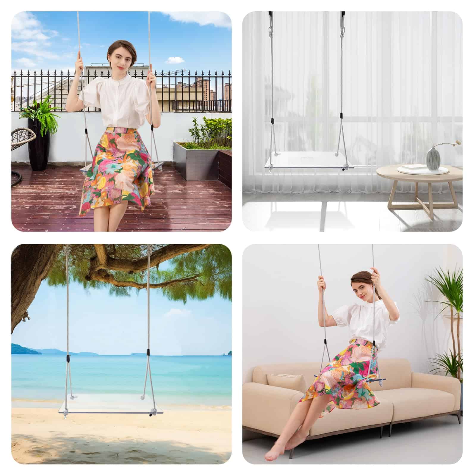 Disfruta del columpio de red nets Tribe Tree Swing Set con asiento de columpio de PC ajustable para el porche, con cuerdas de suspensión para mayor seguridad. Con capacidad de carga de 500 lbs, este columpio es ideal para interiores y exteriores, ya sea en el patio trasero, jardín o patio de juegos. ¡Diviértete al aire libre con este columpio resistente y duradero!