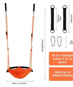 Con un anillo de conexión de dos vías y ocho hebillas, el asiento de columpio se puede ajustar fácilmente en altura, desde 106 cm/41.73 pulgadas hasta 180 cm/70.86 pulgadas, para adaptarse a las necesidades de tu hijo. Con un límite de peso de 440 libras (200KG), este columpio es seguro y resistente.