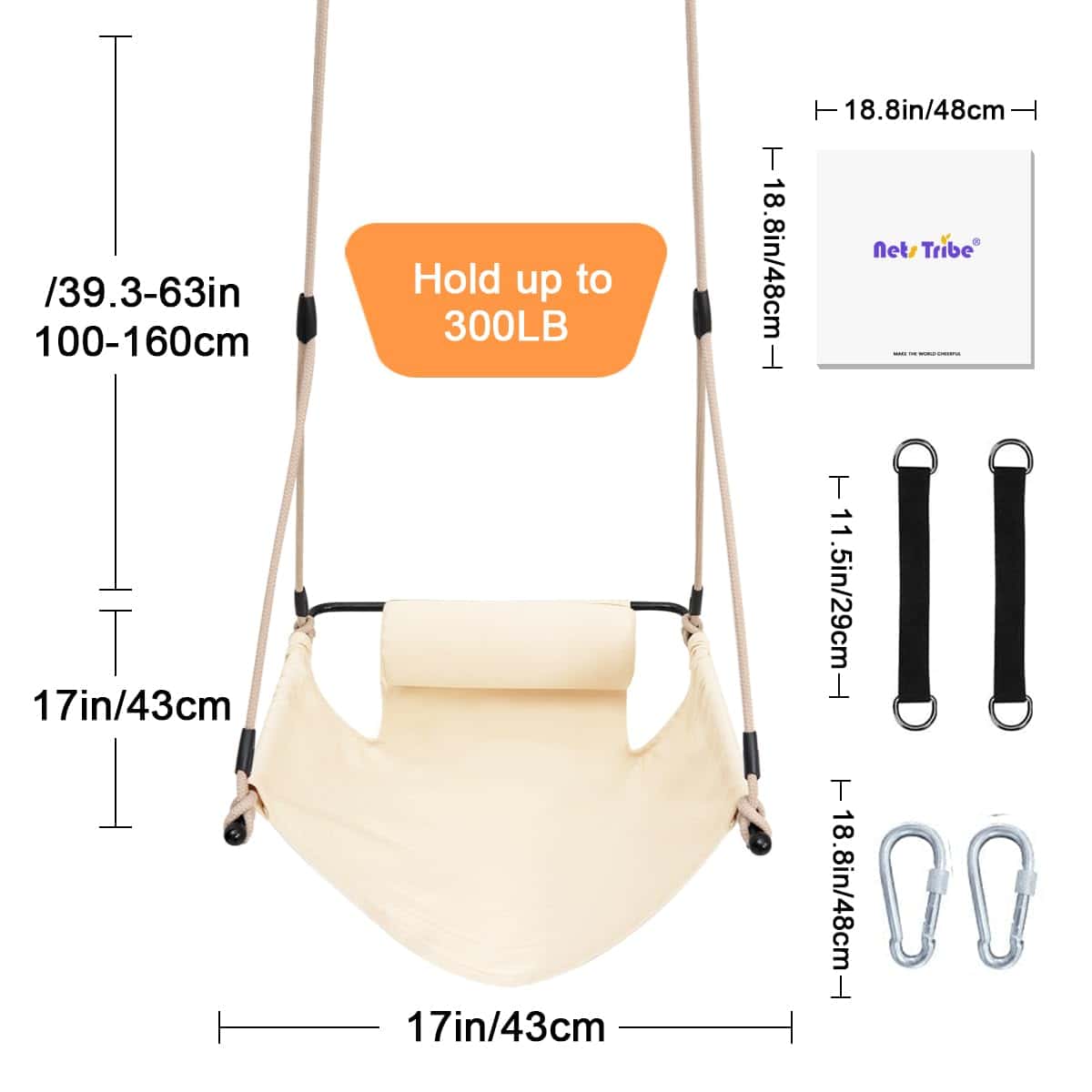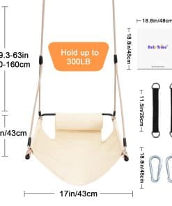 2. Tela duradera La tela está hecha de un material resistente a las manchas que es cómodo, transpirable y fácil de mantener, el columpio de cuerda proporciona un excelente soporte para horas de uso y está diseñado para durar años.