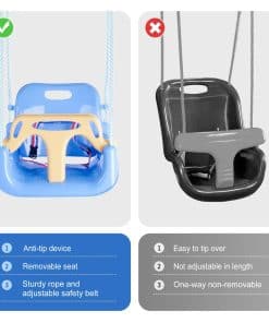 El columpio 3 en 1 para bebés a niños pequeños es la opción asegurada de miles de madres. El columpio puede ejercitar la capacidad de equilibrio del bebé, nuestro columpio tiene un diseño antiaéreo, respaldo cómodo, cerca estable, cuerda fuerte y resistente al desgaste, brinda alegría al bebé, más seguro. Este asiento duradero se puede usar en la mayoría de los conjuntos de columpios, árboles, gimnasios de jungle o interiores.