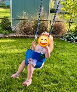 Seguro Este columpio infantil es tan bonito y está bien protegido, hecho de polietileno de alta calidad, memoria elástica, no se deforma con resistencia al clima de -30 C a 50 C, disfrute la felicidad todo el año; Conectado por elementos de ACERO INOXIDABLE y cadenas de columpio de hierro con recubrimiento para seguridad y evitar la oxidación. El diseño de alto respaldo ayuda a mantener a su bebé seguro y protegido mientras se columpia!