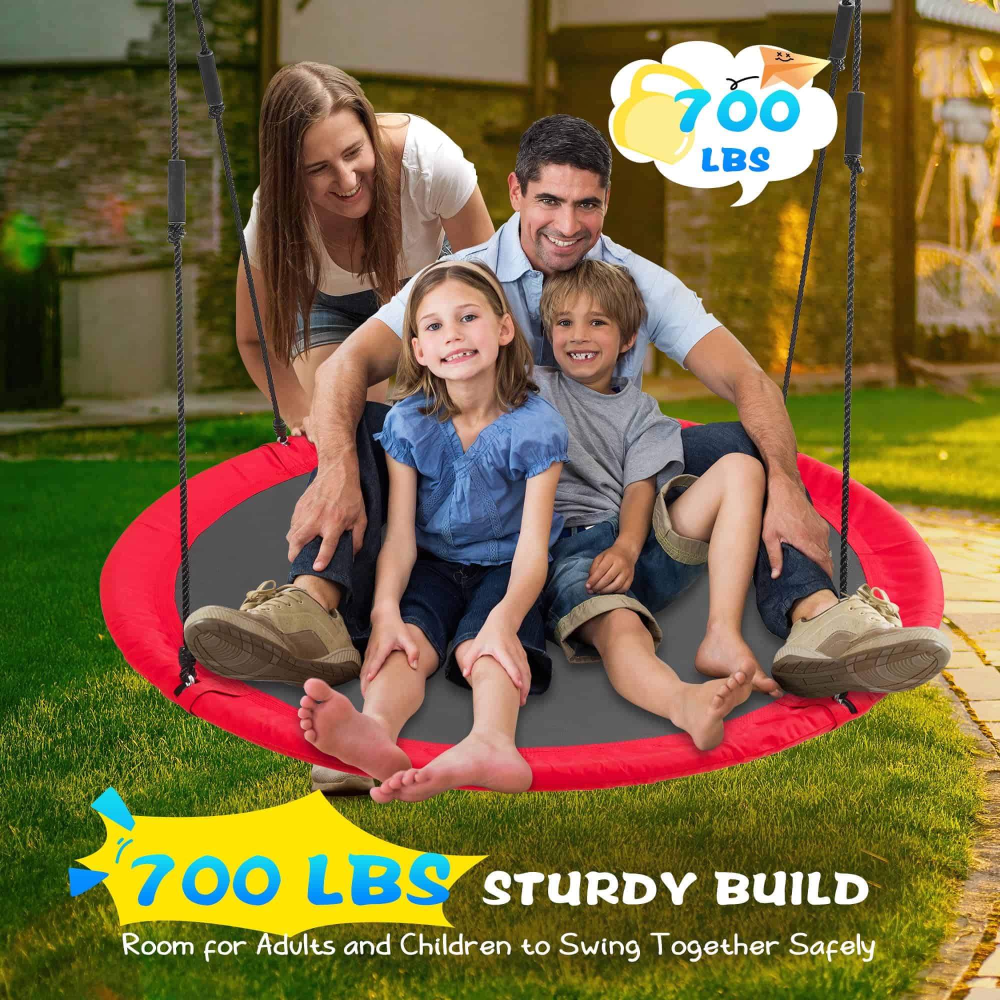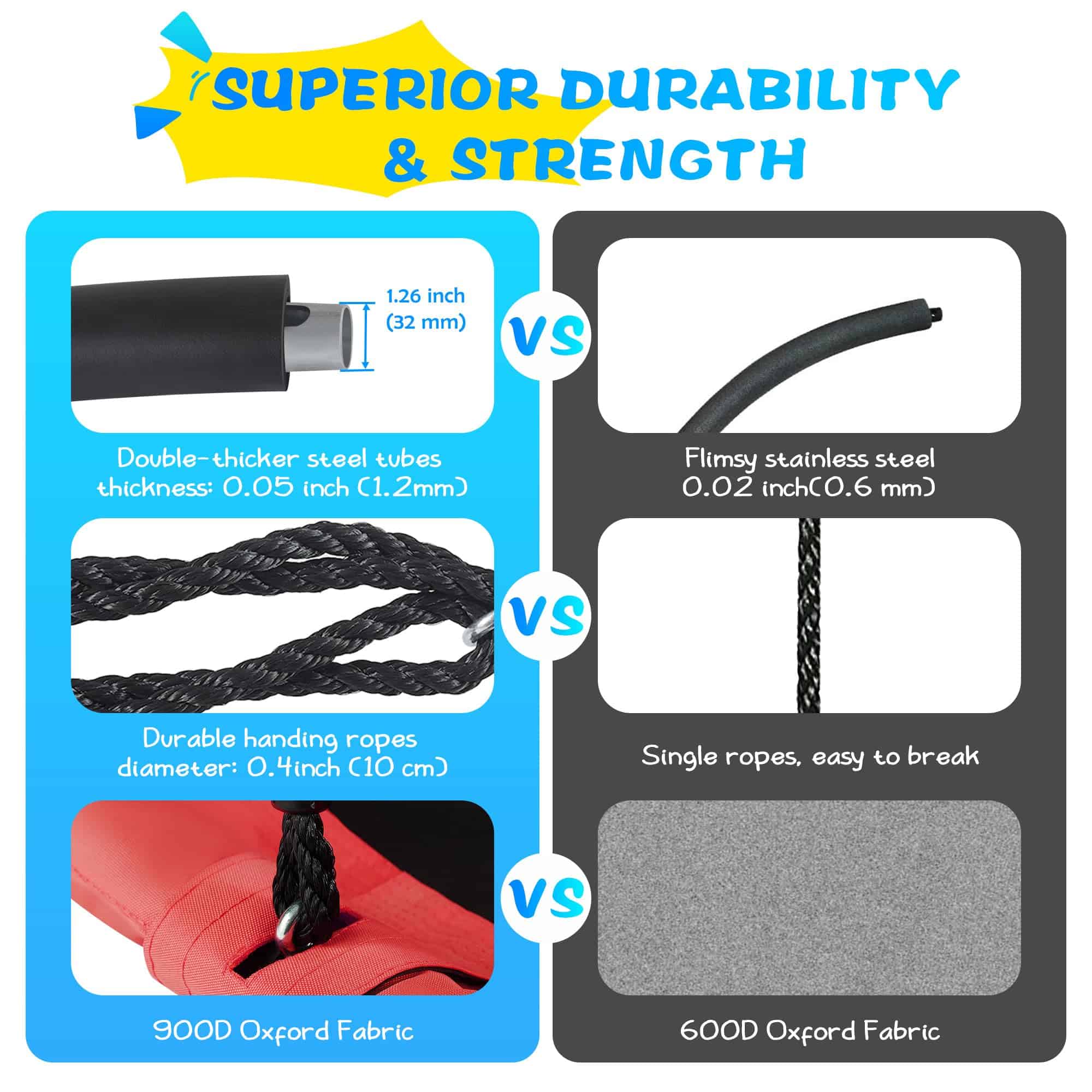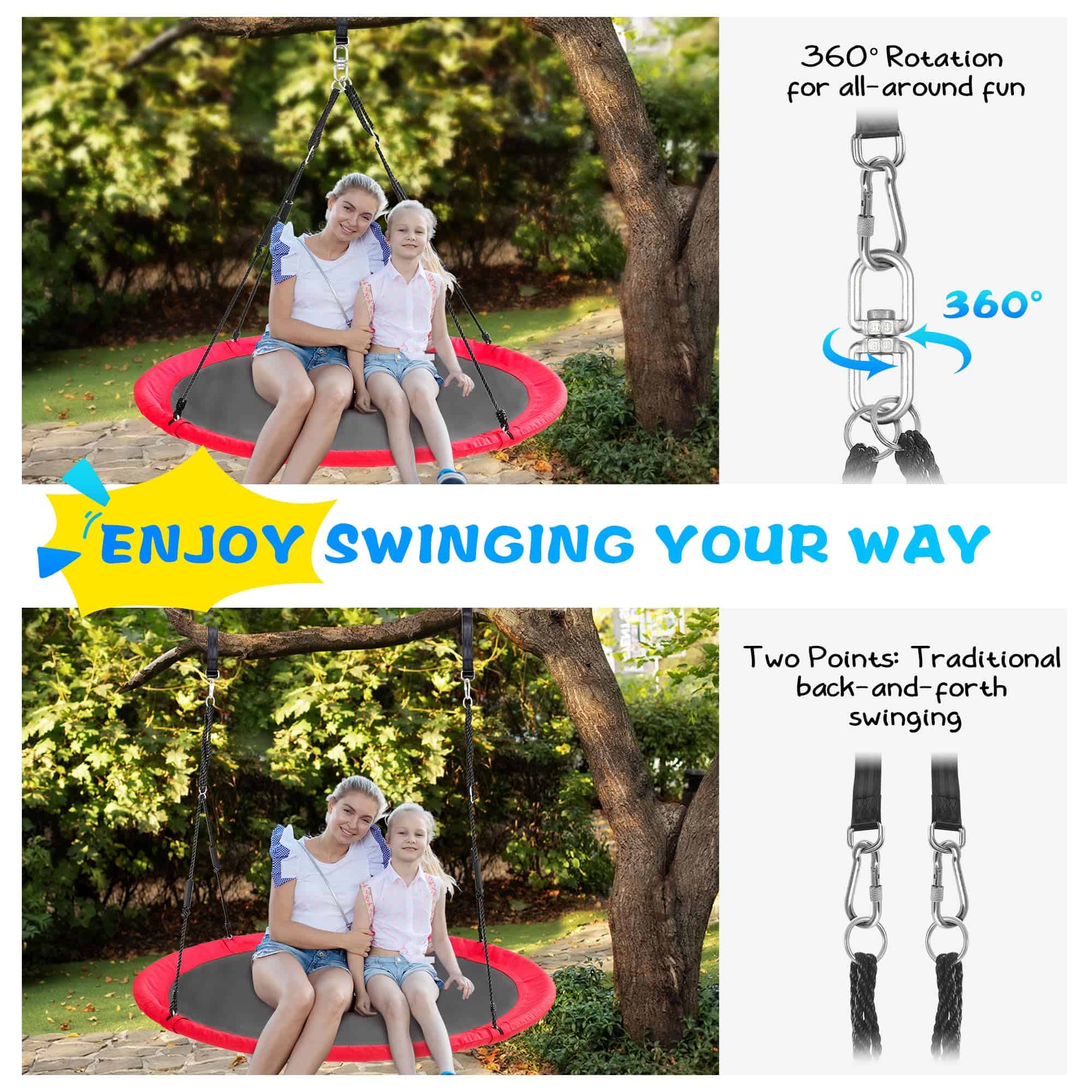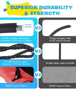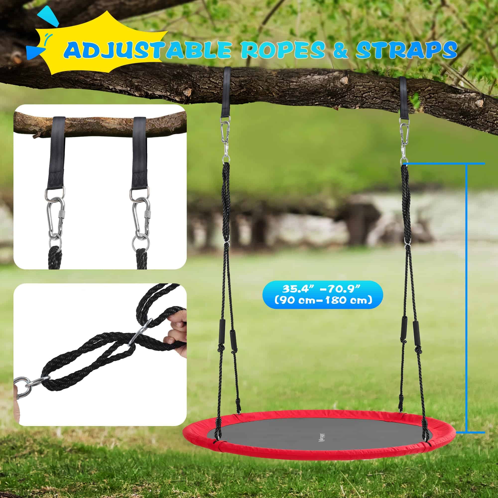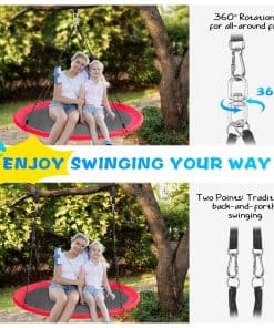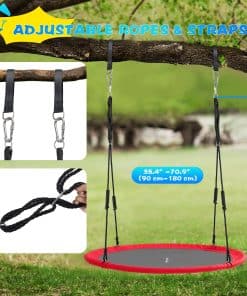 1. Espacioso y divertido versátil: Experimenta lo último en entretenimiento al aire libre con el columpio redondo de 60 pulgadas de LittleLogiQ, perfecto para adultos y niños. Este columpio grande puede transformar patios traseros, parques infantiles o áreas interiores en una zona divertida, proporcionando horas interminables de diversión de columpio para unión familiar. 2. Conjunto de columpio resistente y seguro: Diseñado para soportar hasta 700 lbs, nuestro columpio de árbol resistente cuenta con un asiento cóncavo para evitar resbalones y mejorar la seguridad. Con una superficie lisa y sólida, es ideal para niños pequeños, ofreciendo una experiencia segura libre de peligros, garantizando diversión y seguridad para todas las edades. 3. Columpio duradero y resistente a la intemperie: Construido para resistir todas las estaciones, nuestro columpio redondo al aire libre está fabricado con tela Oxford 900D resistente y reforzado con un tubo de acero de 32 mm de grosor de 1.2 mm. Este columpio redondo está listo para soportar cualquier condición climática, garantizando durabilidad y disfrute continuo. 4. Personalizable e instalación fácil: Ajusta este columpio de árbol para adultos y niños de 35.4″ a 70.9″ para adaptarse a diferentes espacios y alturas de usuario. Con correas de suspensión duraderas y un pivote para rotación sin esfuerzo, este columpio garantiza una instalación fácil y una ajustabilidad perfecta para una comodidad óptima. 5. Instalación fácil y columpio versátil: Configura rápidamente este columpio para adultos, eligiendo entre un punto dual para columpiar clásico o el pivote de 360 grados incluido para una experiencia dinámica. Ideal para diversión emocionante o relajación tranquila, es perfecto para adultos que buscan emocionante juego al aire libre o un retiro tranquilo.