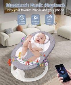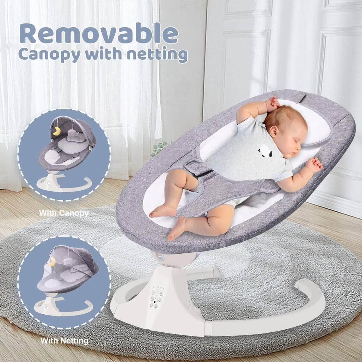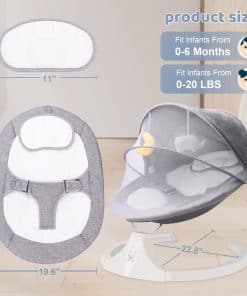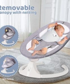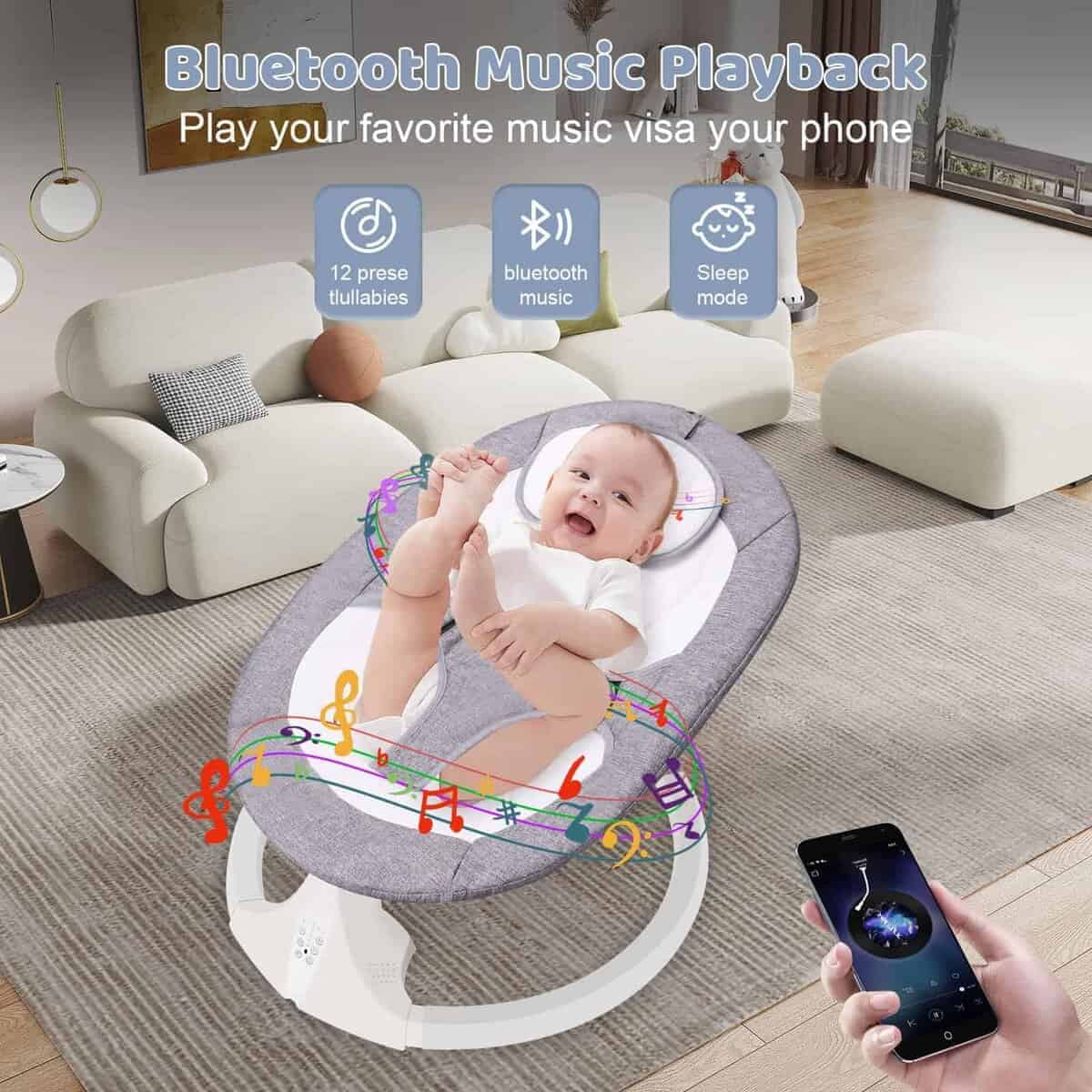 3. Versátil y fácil de usar: Equipado con conectividad Bluetooth, 5 velocidades de balanceo ajustables (que van desde 18 a 31 ), y 3 configuraciones de temporizador convenientes (8, 15 o 30 minutos), este columpio eléctrico para bebé ofrece una experiencia personalizable para calmar a su pequeño.
