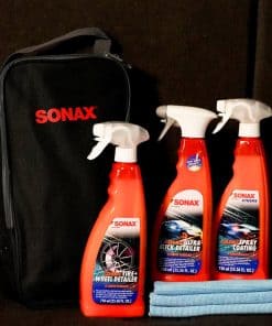 El Combo de Cerámica en Spray SONAX es un sistema de protección cerámica completa diseñado para mejorar y resguardar las superficies de su vehículo con facilidad. Este kit incluye recubrimientos cerámicos de alto rendimiento y soluciones de detallado que ofrecen una protección hidrofóbica superior, un brillo brillante y una mayor durabilidad contra contaminantes ambientales. Ya sea para la pintura, las ruedas o los neumáticos, este combo asegura que su vehículo mantenga un acabado elegante y brillante con resultados duraderos. Lo que se incluye: Recubrimiento Cerámico en Aerosol SONAX Forma una capa protectora fuerte y enriquecida con cerámica que repele el agua, la suciedad y los contaminantes mientras realza el brillo. Detallador de Ultra Deslizamiento SONAX Una fórmula de alta lubricidad que aumenta el brillo, elimina el polvo ligero y las huellas dactilares, y mejora la suavidad de la superficie. Detallador de Neumáticos y Ruedas Cerámico SONAX Proporciona una protección duradera y un acabado profundo y rico para neumáticos y ruedas mientras repele la suciedad y la mugre. (3) Toallas de Perla Premium Speed Master (16×16, Azul) Toallas de microfibra ultra suaves y de alta calidad para una aplicación segura y sin rayas. Bolsa Negra SONAX Una bolsa de almacenamiento resistente y elegante para mantener organizados todos sus elementos esenciales de detallado.