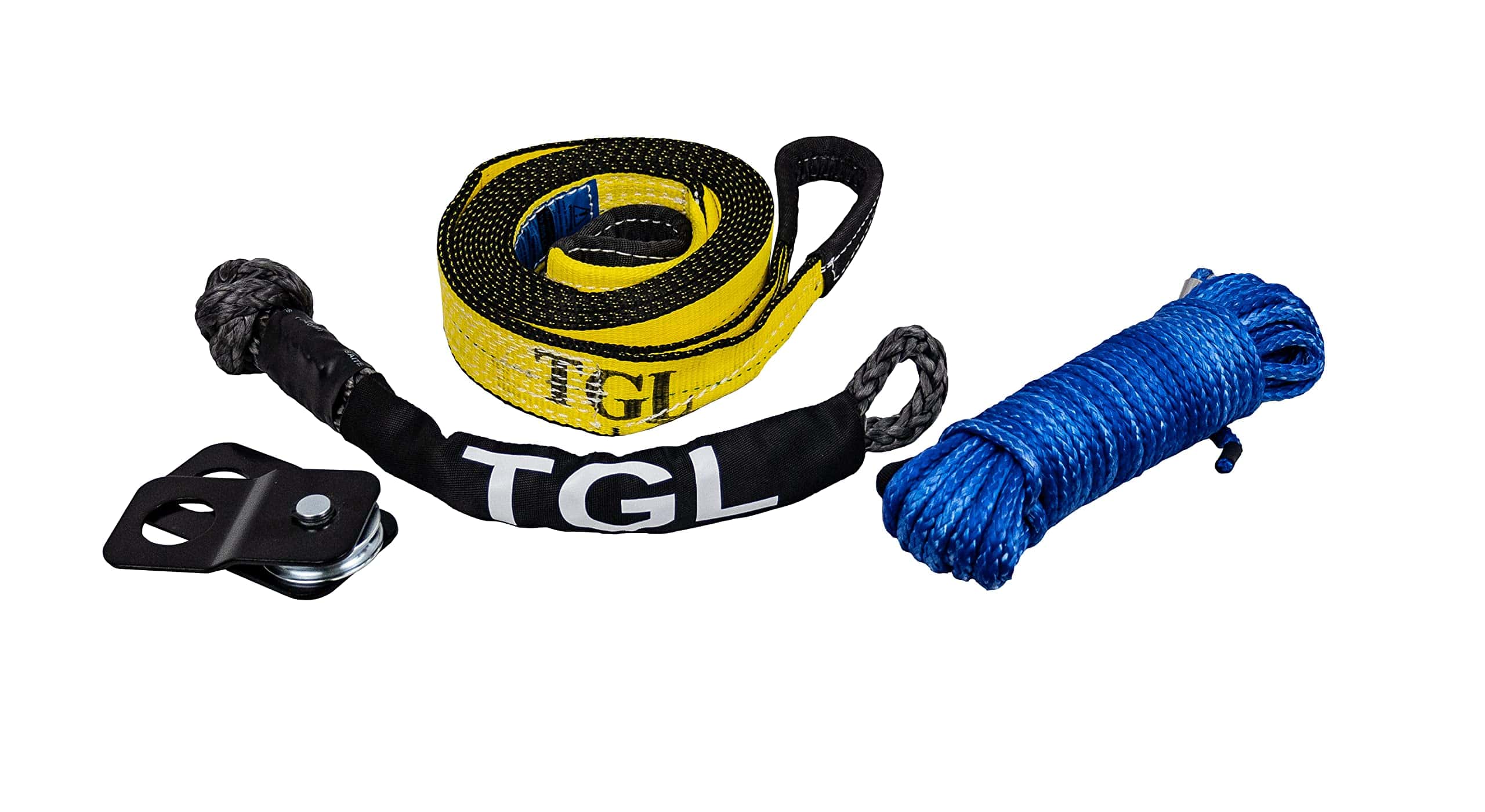 Este combo de malacate para ATV/UTV TGL incluye todo lo que necesita para realizar trabajos pesados. La cinta de remolque de 2 pulgadas y 20 pies cuenta con una capacidad de 10,000 libras y extremos reforzados para una mayor durabilidad. La eslinga suave de 1/2 pulgada, con una longitud de 20 pulgadas, está hecha de UHMWP y tiene una capacidad impresionante de 45,000 libras.