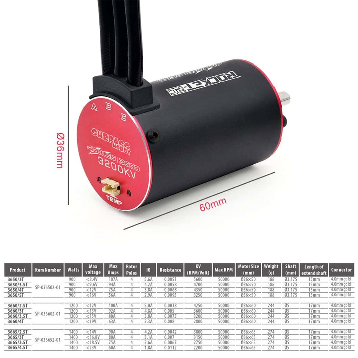 Combo de Motor sin Escobillas 3660 3600kv ESC/A Prueba de
