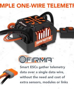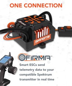 «Al igual que cada componente en el ecosistema Smart de Spektrum, los ESC Smart Firma combinan la simplicidad de «conectar y usar» con la capacidad de comunicarse con otros aparatos Smart, creando el sistema de RC de mejor rendimiento imaginable para su vehículo. Los ESC Smart Firma hacen mucho más que regular la potencia. Funcionan como un ingeniero virtual dentro de su modelo, proporcionando un acceso directo a los datos operativos vitales que necesita para alcanzar el máximo rendimiento. Los ESC Smart Firma le brindan una capa adicional de confianza de que sus dispositivos electrónicos están funcionando de la mejor manera posible. Con los ESC Smart Firma, estará mejor conectado a su vehículo que nunca, sin instalar componentes adicionales que funcionen de forma independiente entre sí. No necesitará cables, módulos o enlaces adicionales. Un regulador electrónico de velocidad Firma proporciona una solución de un solo cable para obtener datos de telemetría como RPM, temperatura, voltaje y capacidad de la batería. Los ESC Firma no solo recopilan los datos, sino que también los envían a su transmisor en tiempo real, en lugar de solo almacenarlos para su estudio posterior. Podrá ajustar la configuración según sea necesario para mejorar el rendimiento sobre la marcha. La solución de telemetría de un solo cable Smart de Firma ha sido probada en calidad y rendimiento por las mejores marcas en RC. Su veredicto: ¡la tecnología Smart es tanto más simple como superior! Este ESC se incluye con un Motor sin Escobillas Spektrum Firma 2050Kv capaz de manejar todo lo que este ESC puede ofrecer, lo que es perfecto para comenzar a conducir con la tecnología Smart de Spektrum.»