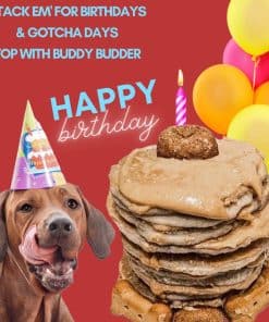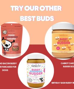 TREAT DE PERRO SALUDABLE – si no lo comerías, ¿por qué lo alimentarías a tu perro, es decir, a tu miembro peludo de la familia? Por eso hicimos una mezcla de panqueques totalmente natural para perros, que es apta para el consumo humano. No hay ingredientes dañinos o conservantes impronunciables. PANQUEQUES DE PERRO – es la mezcla seca versátil perfecta. Use la mezcla seca para disfrutar de los cumpleaños y días de adopción de perros apilando los panqueques y cubriéndolos con su BUDDY BUDDER favorito, frutas y una vela. Use la mezcla seca en una gofrera y brunch con su cachorro. También puede usar la mezcla seca de harina con sus golosinas caseras favoritas para perros. NUEVE SABORES – nuestra mezcla de panqueques viene en cinco sabores divertidos. Tenemos Pumpkin Pup, Barkin Banana, Superberry Snoot, Begging Bacon, Awesome Apple, Red Velvet, Carrot Cake, Birthday Bash, Gimme S’mores. También tenemos los mantequillas de maní para perros Buddy Budder complementarios para combinar con los sabores de los panqueques para perros. ¡Es un tratamiento tan divertido y sabroso para tu mascota! PARA TODOS LOS PERROS – cachorros, adultos, razas grandes y pequeñas pueden disfrutar de BUDDY BUDDER. Es un producto completamente natural, solo use la discreción de los padres de mascotas al alimentar e introducir un nuevo tratamiento, algunos perros tienen estómagos más sensibles que otros. HECHO EN EE. UU. – los ingredientes de nuestros productos son de alta calidad, ingredientes seleccionados y fabricados por nosotros en nuestras instalaciones. Nos enorgullece fabricar nuestros propios tratamientos para poder seguir ofreciendo un producto de calidad.