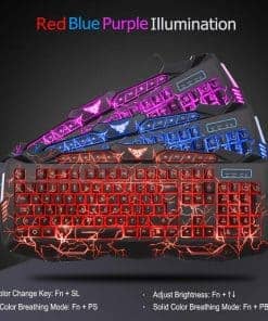 Teclado de juego mecánico, ratón para juegos, combo de alfombrilla de ratón, auriculares de juego iluminados /brbrEspecificación:/brbrColor de teclado para juegos de 3 colores:/brbFN + SL cambia los 3 colores (rojo, azul, morado);/bbrbFn + Arriba/Abajo: ajusta el brillo del teclado./bbrbFn+PS: modo autobreath de 3 colores; Fn+PB: modo de respiración de 1 color./br brbRatón inalámbrico:/brbbr liBotón de DPI: 800/1200/1600/2000/li liBotón de DPI: 4 botones de cambio de color también, elige uno libremente./li liBotón de juego profesional: botón de jefe/botón de fuego./li liLa clave para el éxito de tu lucha./li li¡Tecla de Avance + botón DPI enciende/apaga la luz!/li /ul pbrbAuriculares de juego LED con micrófono:/brul liTipo: Sobre la oreja /li liDiámetro del altavoz: 40mm /li liImpedancia: 32 ohm /li liSensibilidad: 104dB±3dB /li liRespuesta de frecuencia: 20Hz-20KHz/li liDimensión del micrófono: 6.0*5.0mm /li liDirectividad del micrófono: Omnidireccional /li liEnchufe: clavijas de 3.5mm para micrófono y auriculares/audio /li liLongitud del cable: 2.2M /li liVoltaje de Trabajo LED: DC5V±5% /li liInterfaz de Trabajo: USB+3.5mm Estéreo /li /ul pbrbCompatibilidad:/brul liWin7/Win8/Win10/XP/Vista;/li /ul pbrbPaquete incluido:/brul li1x Teclado para juegos;/li li1x Ratón para juegos;/li li1x Auriculares;/li li1x Alfombrilla para ratón;/li /ulbrbrbGarantía de Satisfacción:/brul liOfrecemos garantía de satisfacción del 100%; Garantía de por vida, devoluciones y reembolsos gratuitos por cualquier problema de calidad./li /ulbrbrbSoporte técnico:/brbrSi experimentas algún problema al usar el teclado de juego luminoso, no dudes en contactarnos por mensaje en nuestra tienda. Haremos todo lo posible para ayudarte a resolver cualquier problema.
