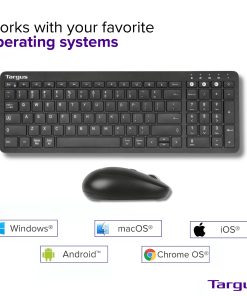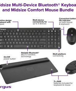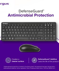 Pon la productividad al alcance de tus dedos con el Combo de Teclado y Mouse Bluetooth Antimicrobiano de Targus. Experimenta la libertad de los cables con su opción de conectividad inalámbrica Bluetooth y la posibilidad de conectar fácilmente hasta tres dispositivos.El Teclado Bluetooth Antimicrobiano de Tamaño Mediano combina la conveniencia de un teclado numérico y un diseño delgado para deslizarse sin esfuerzo en el lateral de tu maletín o mochila. Con su conexión Bluetooth 5.1 fiable y que ahorra batería y la conectividad multi-dispositivo, puedes llevar tu espacio de trabajo inalámbrico contigo en la carretera. El Mouse Antimicrobiano de Tamaño Mediano tiene un sensor óptico DPI ajustable (800, 1200, 1600 o 2400) y se ajusta al nivel de sensibilidad de mouse deseado, para que puedas trabajar con precisión donde sea que vayas.Protección AntimicrobianaA diferencia de los aerosoles de aplicación tópica, los productos de Targus DefenseGuard están infundidos con un aditivo antimicrobiano que no se desgasta ni se lava y dura toda la vida del producto para ayudar a prevenir el crecimiento de microorganismos.Diseñado para la Comodidad y la ConvenienciaEste elegante combo de teclado y mouse es fácil de usar y cuenta con características de confort mejoradas. La forma esculpida del mouse guía tu mano a una posición naturalmente cómoda, mientras que sus dos botones y la rueda de desplazamiento te permiten moverte rápidamente entre las páginas web. El diseño moderno y delgado del teclado tiene un perfil bajo para un fácil almacenamiento, pero el teclado numérico completo te permite escribir cómodamente.Liberad InalámbricaConecta tus accesorios a través de la fiable y que ahorra batería conexión inalámbrica Bluetooth.Escritura de PrecisiónEscribe con confianza en un teclado diseñado para estabilidad y precisión. Su teclado numérico completo hace un gran impacto donde quiera que esté tu espacio de trabajo.