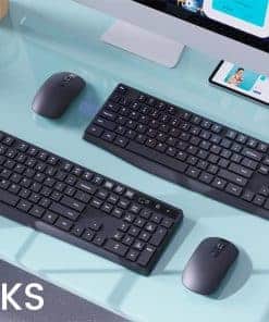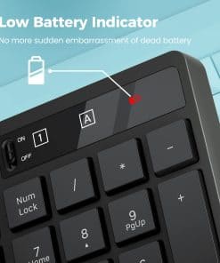 1. 2.4G Inalámbrico Plug and Play: simplemente conecta el teclado inalámbrico y el ratón con un receptor USB (INCLUIDO en el compartimiento de la batería del ratón), para ahorrar un puerto USB de tu computadora. Sin retrasos ni desconexiones. Permite una conexión inalámbrica confiable de hasta 10 metros (33 pies) sin necesidad de controladores. 2. Teclado de tamaño completo de 104 teclas: con diseño QWERTY estándar de EE. UU., el teclado inalámbrico Lovaky hace que cada tecla en el teclado numérico sea independiente y bien espaciada, evitando en gran medida presionar la tecla incorrecta. El soporte plegable detrás del teclado proporciona un ángulo cómodo para escribir, para que puedas disfrutar de una escritura cómoda durante horas. 3. Ahorro de energía prolonga la duración de la batería: el teclado y el ratón inalámbrico tienen un interruptor de encendido/apagado para ahorrar la pérdida de batería innecesaria. Después de 10 minutos de inactividad, el combo de teclado y ratón inalámbrico entrará automáticamente en modo de suspensión para ahorrar energía. El teclado requiere una batería AAA y el ratón requiere dos. 4. Ratón inalámbrico silencioso: el ratón de la computadora ofrece clic silencioso, no es necesario preocuparse por molestar a otros para que descansen mientras trabajan o juegan. El ratón ajustable de DPI proporciona 3 niveles de DPI (800/1200/1600) para satisfacer tus diferentes necesidades en cuanto a sensibilidad. 5. Combo de ratón y teclado inalámbrico compatible: incluye un teclado de tamaño completo y un ratón de alta sensibilidad. Funciona con tu PC, escritorio, portátil o cuaderno. Compatible con los sistemas operativos Windows XP / Vista / 7 / 8 / 10. 6. Indicador de encendido: al insertar la batería nueva en el teclado y el ratón, si la conexión normal con la computadora enciende la luz roja durante 5-8 segundos y se apaga, si la computadora no está conectada normalmente enciende la luz roja por un momento y luego se apaga. El modo de batería baja es presionar cualquier tecla y la luz roja de encendido parpadeará. Por lo tanto, cuando empiece a usarlo, que la luz roja de encendido parpadeando durante 5-8 segundos es normal.