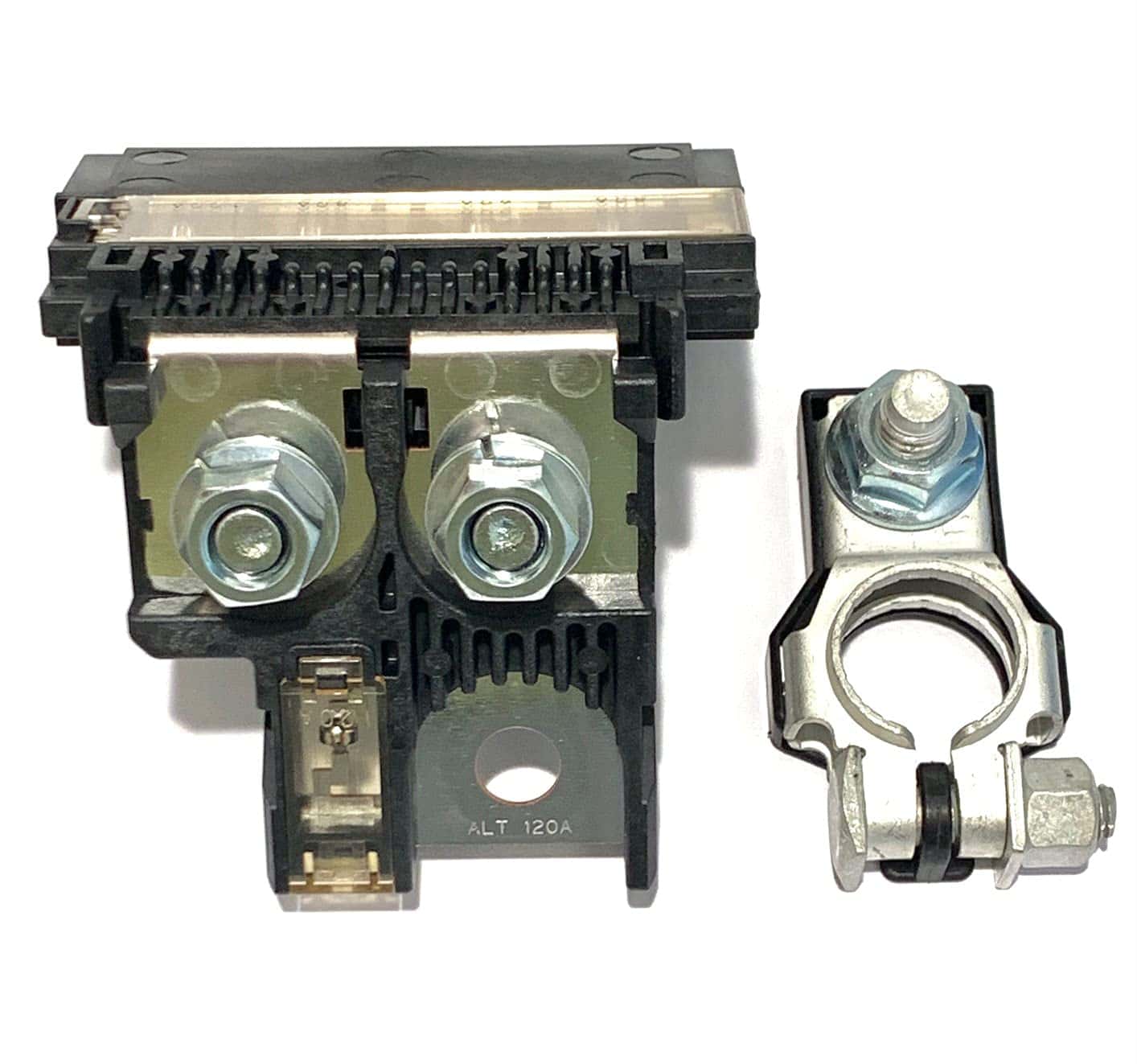 Combo Pack! Nuevo OEM 24380-79913 Fusible de batería con terminal positivo de batería 24340-7F000 con tuercas. Ajuste directo, fácil de instalar, incluye terminal positivo de batería con tuercas de grado automotriz M8. Ratings de circuito de 5 polos: 120Amp, 80Amp, 60Amp, 80Amp, 100Amp. Modelos incluyen: FX35 (03-08) FX45 (03-08) G35 (03-07) 350Z (03-09) NV200 (13-22) Fairlady Z Stagea Skyline. Por favor, contáctenos para confirmar la compatibilidad.