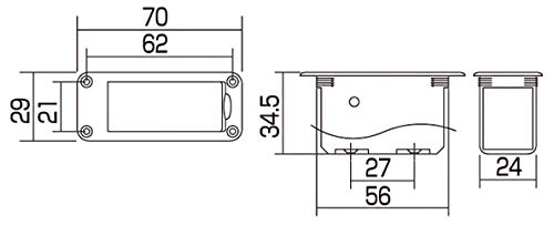 Compartimento de batería atornillable hecho de plástico negro para una batería de bloque de 9V. Longitud total: 70 mm. Ancho total: 29 mm. Altura total: 34.5 mm. Longitud de instalación: 56 mm. Ancho de instalación: 24 mm