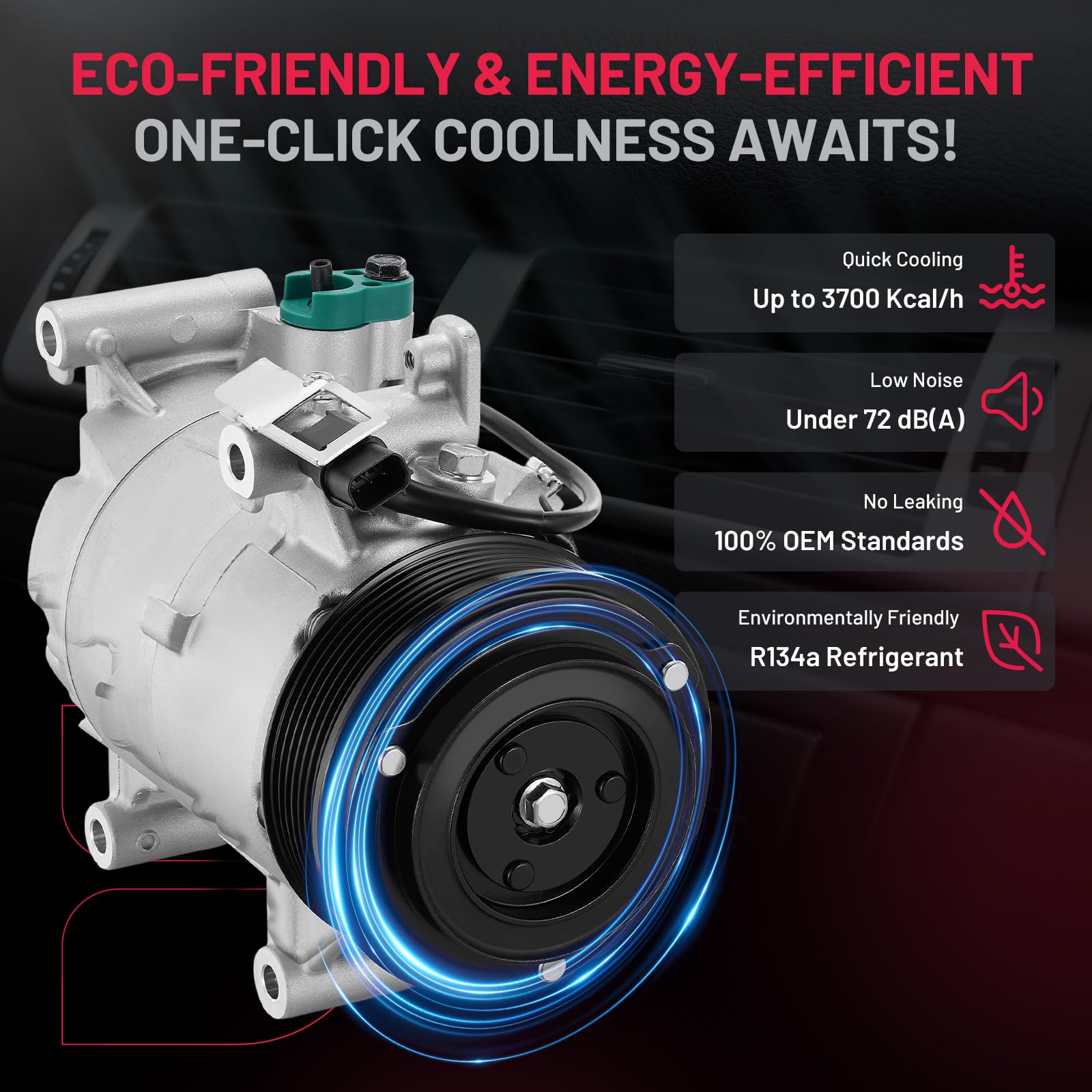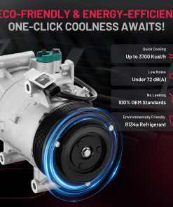 4. Instalación fácil – Los compresores de aire acondicionado vienen precargados con aceite PAG para aplicaciones R134a, con los anillos tóricos /arandelas de sellado R134A y conectores de ajuste directo para facilitar la instalación.