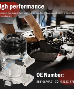 Especificación: Compresor Estilo: 6SEU16C Ranuras: 8 Voltaje: 12V Diámetro de la polea (MM): 115 Paquete Contiene: 1 x Compresor de Aire Acondicionado. Compatible con: para Accord 2018-2022 1.5L L4. Número OE 388106A0A01 CO-11552C 178320. Nota: Este producto no incluye instrucciones. Se recomienda instalarlo bajo la guía de profesionales. FanPaYY es una marca profesional especializada en interruptores de ventanas automotrices, manijas de puertas, kits de reparación, cámaras de retroceso y otras partes automotrices. Nos esforzamos por proporcionarle reemplazos rentables, si tiene alguna sugerencia, no dude en hacérnoslo saber. ¡Gracias por su apoyo!