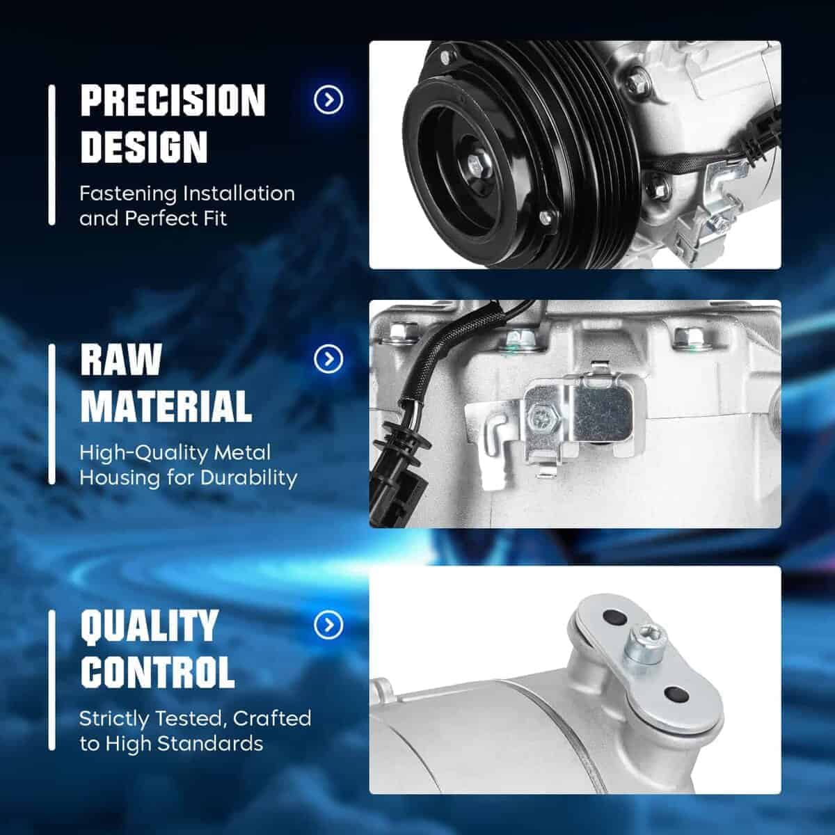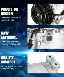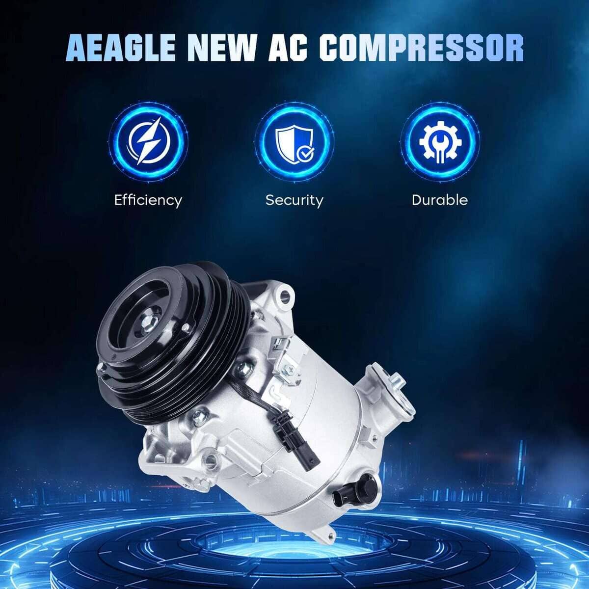 Todos los compresores de aire acondicionado de AEagle son nuevos y adoptan tecnología de fabricación avanzada y materiales de aceite de alta calidad, lo que mejora en gran medida la rigidez y extiende el tiempo de uso. Asegure el funcionamiento suave del vehículo y cree un ambiente cómodo con bajo ruido. Compatible con: Por favor, asegúrese de que este producto se ajusta a su automóvil. Compatible con: para CHEVROLET IMPALA 2.5L 2014-2018, para CHEVROLET MALIBU 2.0L, 2.5L 2013-2015, para CHEVROLET MALIBU LIMITED 2.5L 2016, para CHEVROLET BUICK REGAL 2.0L/2.4L 2014-2017. Sustituye a los números de parte: 16003548-101, 16003548-102, 16003548-103, 16003548-104, 22910274, 22947668, 23314082, 23413998, 84133999, 84441491. Parámetros del Producto: Tipo de Aceite: PAG46, Capacidad de Aceite: 150ml. El compresor está equipado con aceite. No requiere grasa adicional. Nota de Instalación: 1. Antes de la instalación, todo el sistema de aire acondicionado, condensador, válvula de expansión y tanque de evaporación deben limpiarse a fondo. Si hay suciedad, debe reemplazarse. De lo contrario, después de instalar el compresor de aire acondicionado, la suciedad fluirá hacia el nuevo compresor, lo que causará problemas. 2. No vierta el lubricante de refrigerante usado de nuevo en el contenedor para evitar la contaminación, y no lo mezcle con otros lubricantes de refrigerante. 3. Antes de usar, verifique si la polea gira normalmente, si hay ruido y oscilación, si la placa motriz está deformada y si el enchufe de la bobina es firme y confiable.
