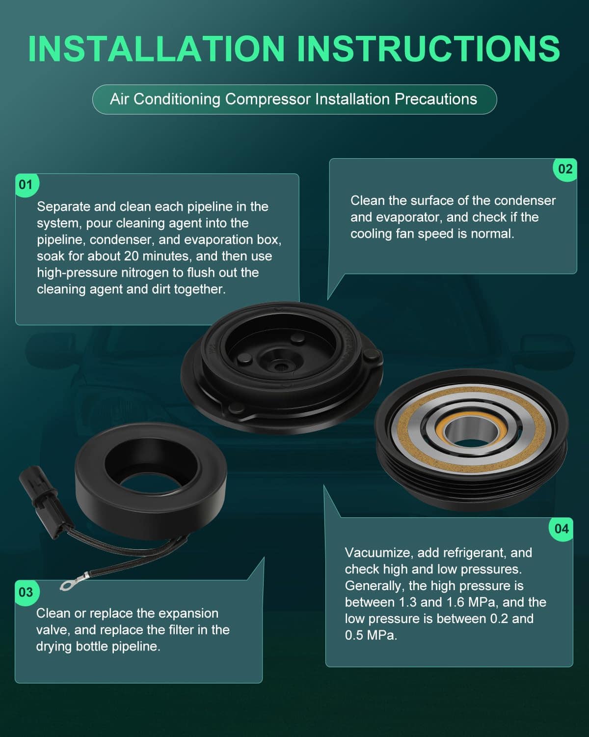 5. Consejos: Consulte los detalles de la descripción a continuación para asegurarse de que el compresor de aire acondicionado se ajuste