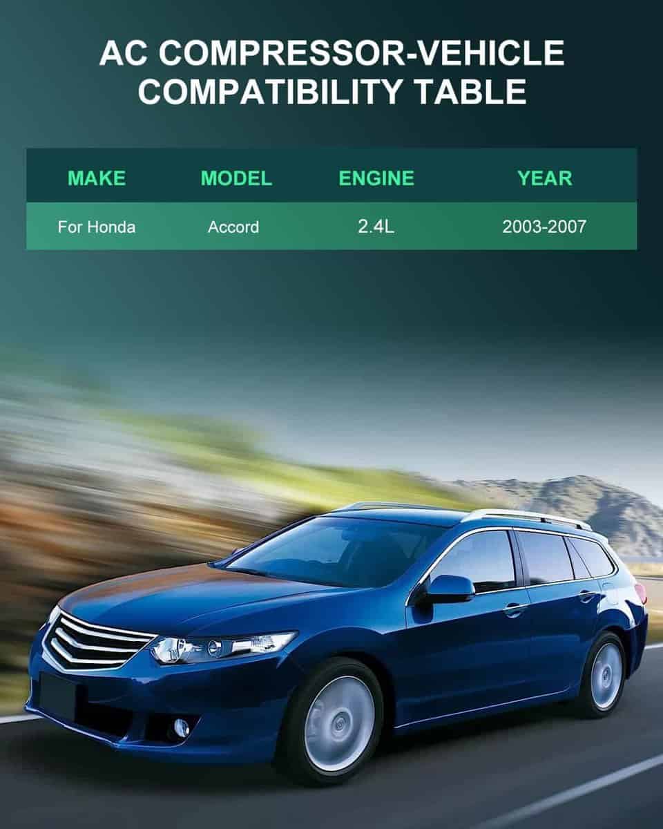 Número de Partes CO 28003C, 1521609, 38810RAAA01, 638841, 4710537, 4711538, 2011253, 10000627, 10000628, 0610090, 4710538. Compresor de Aire Acondicionado Compatible con: 2003Honda Accord 2.4 L, 2004 Honda Accord 2.4 L, 2005 Honda Accord 2.4 L, 2006 Honda Accord 2.4 L, 2007 Honda Accord 2.4 L. Paquete incluido como se muestra en la imagen: Compresor de A/C y embrague