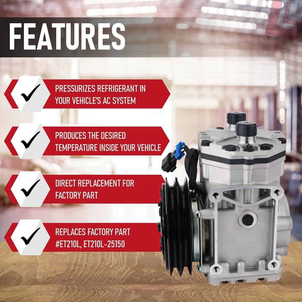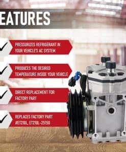 2. Compatible con Repuestos para Freightliner Peterbilt Kenworth – 1996, 1998 T800 | 19996-1998 T800 8.5L | 1997 Kenworth T800 7.0L | 1996-1999 T800 5.9L, 8.3L, 10.0L, 10.5L, 10.8L, 12.0L, 12.7L, 14.0L, 14.6L, 14.9L |. Si está experimentando ruidos fuertes o extraños, fugas alrededor de la unidad de aire acondicionado, reducción de aire saliendo o recibe aire cálido en lugar de frío en su sistema de aire acondicionado, entonces podría tener un problema con la unidad de su compresor de aire acondicionado.