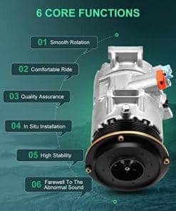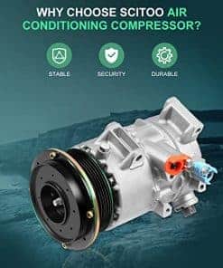 Compresor de aire acondicionado SCITOO para Toyota Camry 2.4L 2007-2009, Toyota RAV4 2.4L 2006-2008. Incluye embrague y bujes para una instalación completa. Construcción en acero, hierro o aluminio para mayor durabilidad.